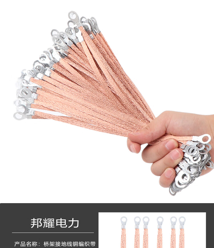 邦耀电力 避雷铜编织带 桥架接地镀锌锡 4平方 总长200mm M8 100根/包 单位:包