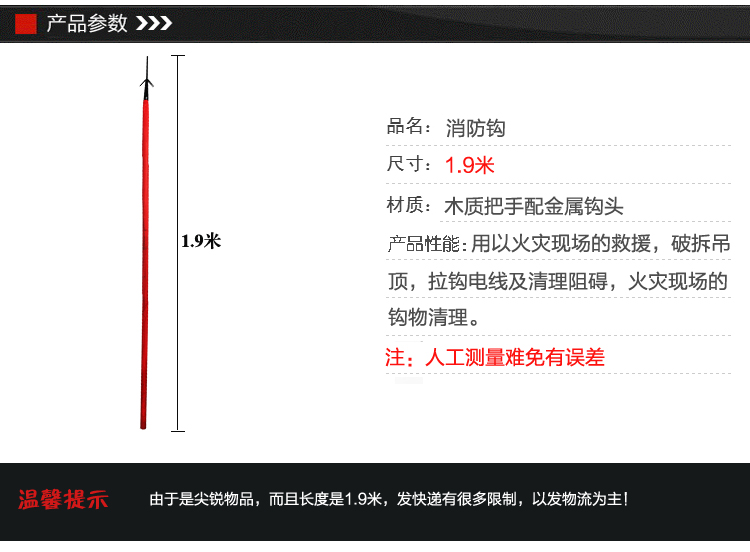 谋福 CNMF 8753 消防火钩 救生扑火钩 木质把手配金属钩头 救援设备 单位:把