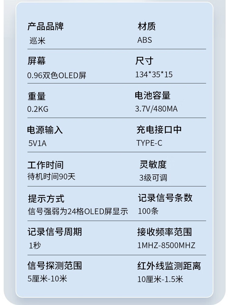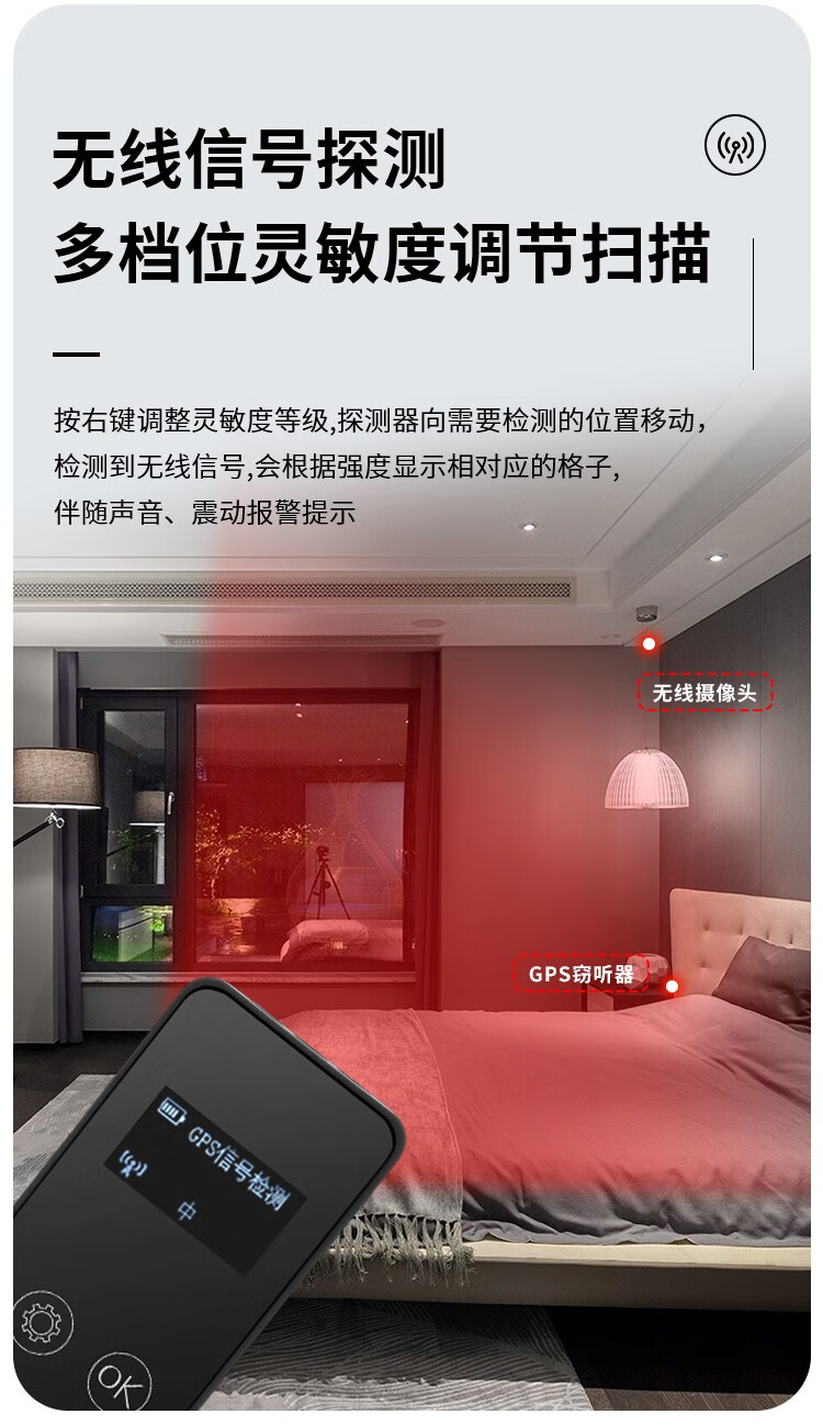 巡米GPS探测器摄像头探测器酒店反监听防窃听偷拍信号探测仪 语音功能+防偷拍+防窃听+防定位 单位:台