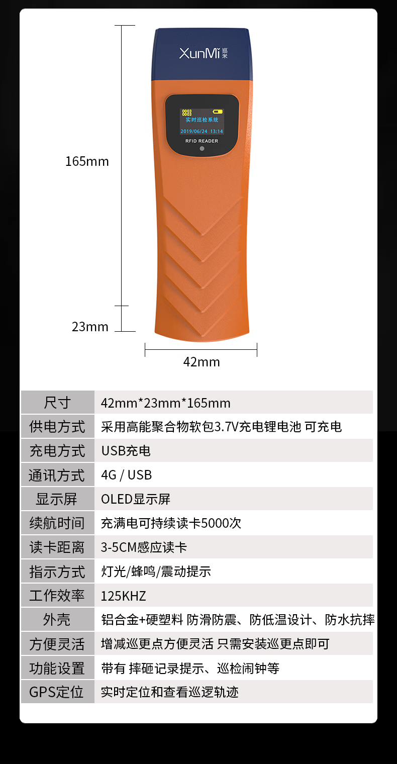巡米XD-30S4G版GPSP定位实时上传巡更棒巡更打点器巡更系统保安巡逻 4G实时GPS定位 单位:台