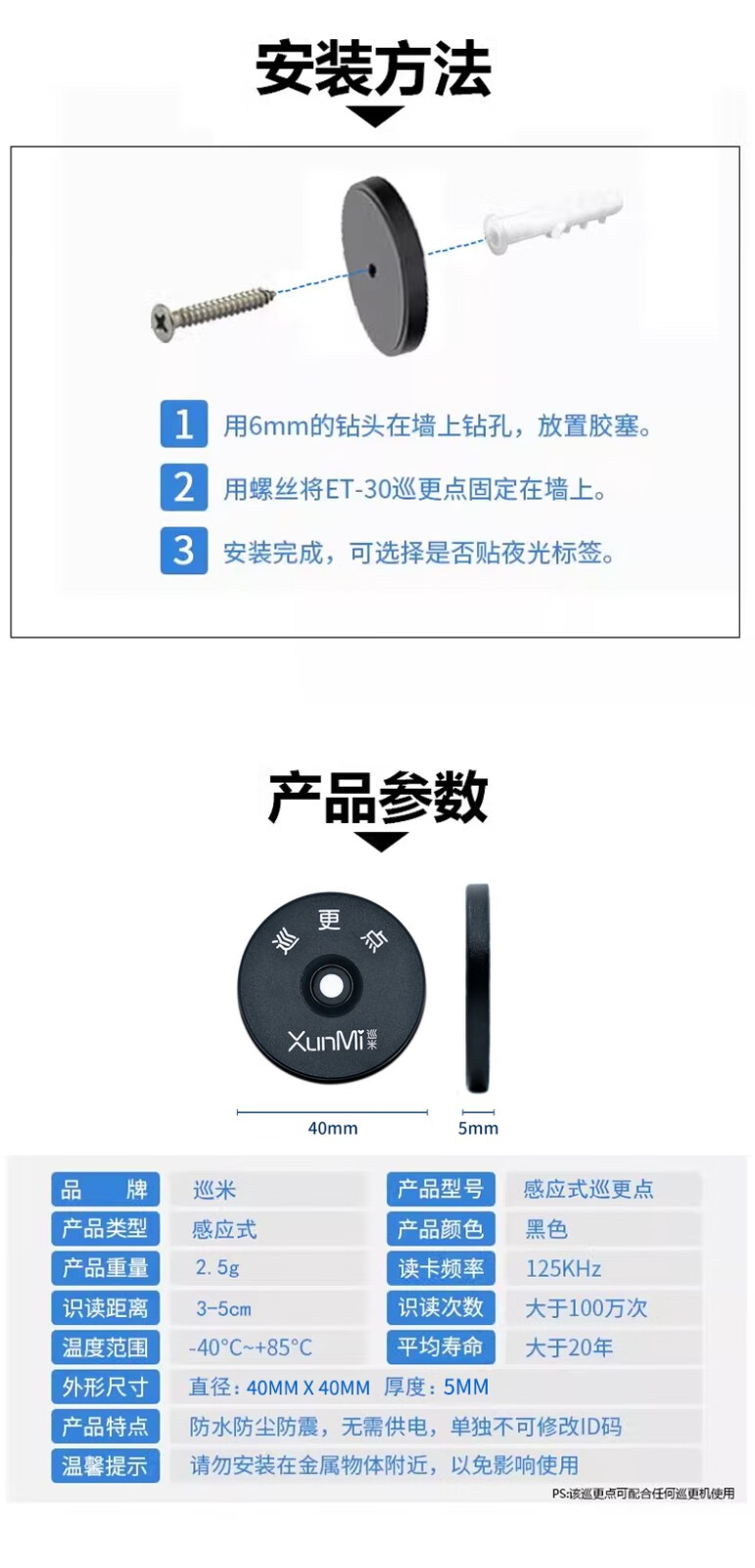 巡米巡更点 巡更地点信息钮 巡更棒地址钮 感应式信息钮 巡更点10个装 单位:组