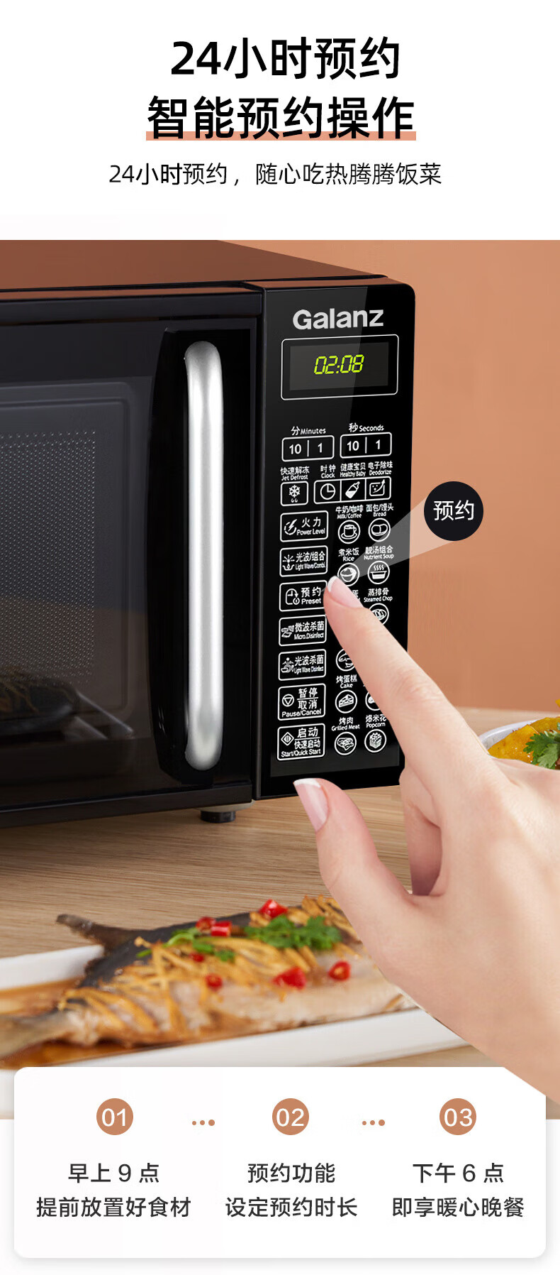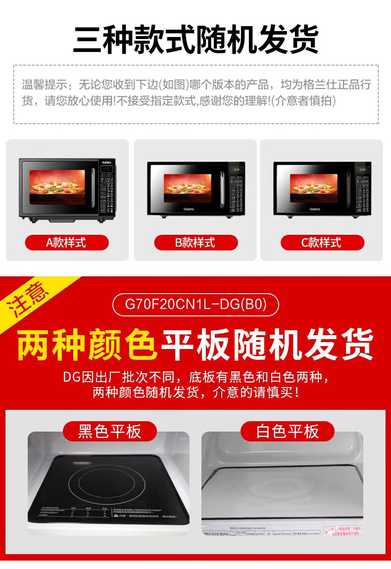 格兰仕(Galanz)微波炉烤箱一体机 光波炉 家用平板式 智能预约 电脑操控 解冻 加热 微煮炖烤20L容量升级款 G70F20CN1L-DG 单位:台