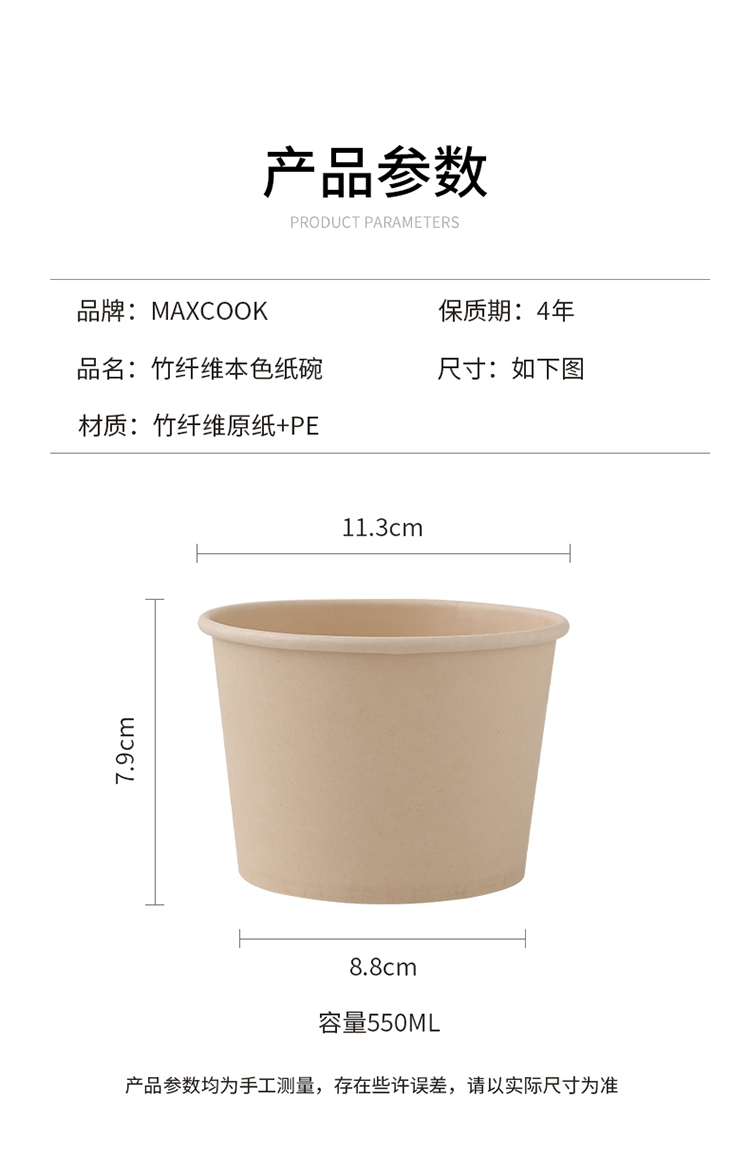 美厨(MAXCOOK)一次性碗 可降解碗饭盘 厨房用品烧烤野炊碗碟火锅汤碗纸碗餐具 550ML*15只 单位:包
