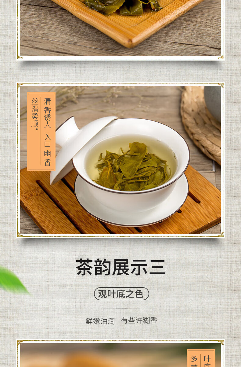 香高持久,栗香,滋味鲜爽醇厚回甘,汤色黄明绿亮。
