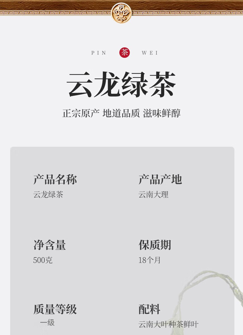 大栗树 茶 云龙绿茶 一级茶叶云南大理 炒青茶500g/袋 单位:袋