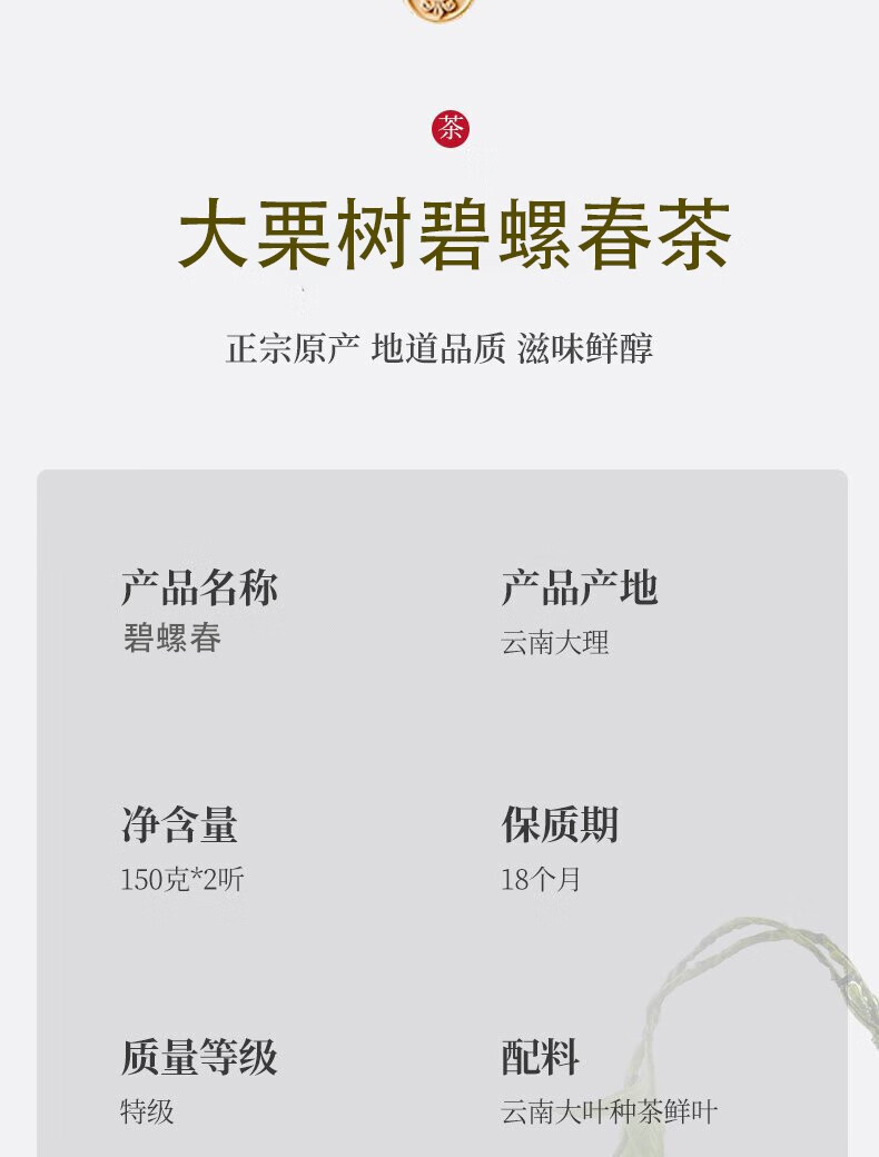 大栗树 茶 大栗树碧螺春绿茶大理云龙栗螺春茶叶特级300g礼盒装新茶 单位:盒