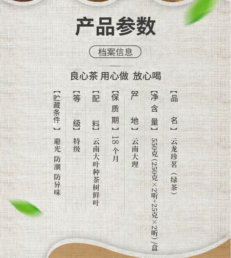 大栗树 碧螺春绿茶浓香型云龙珍茗特级 云南大理茶叶礼盒装550g 单位:盒