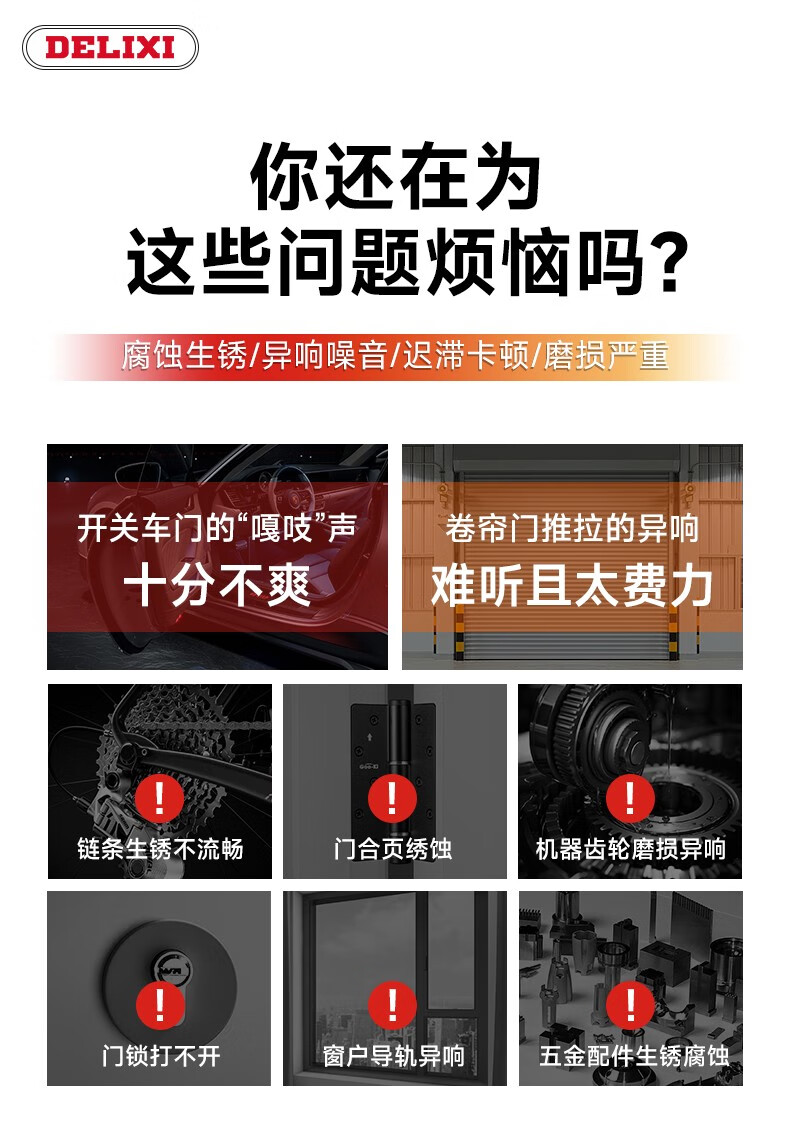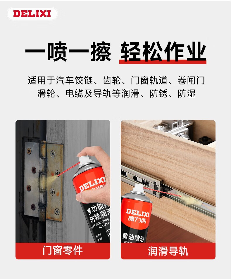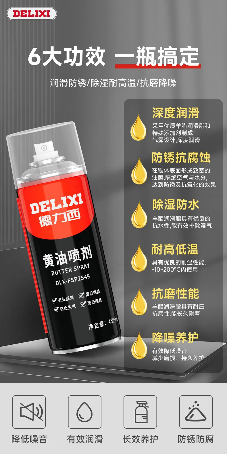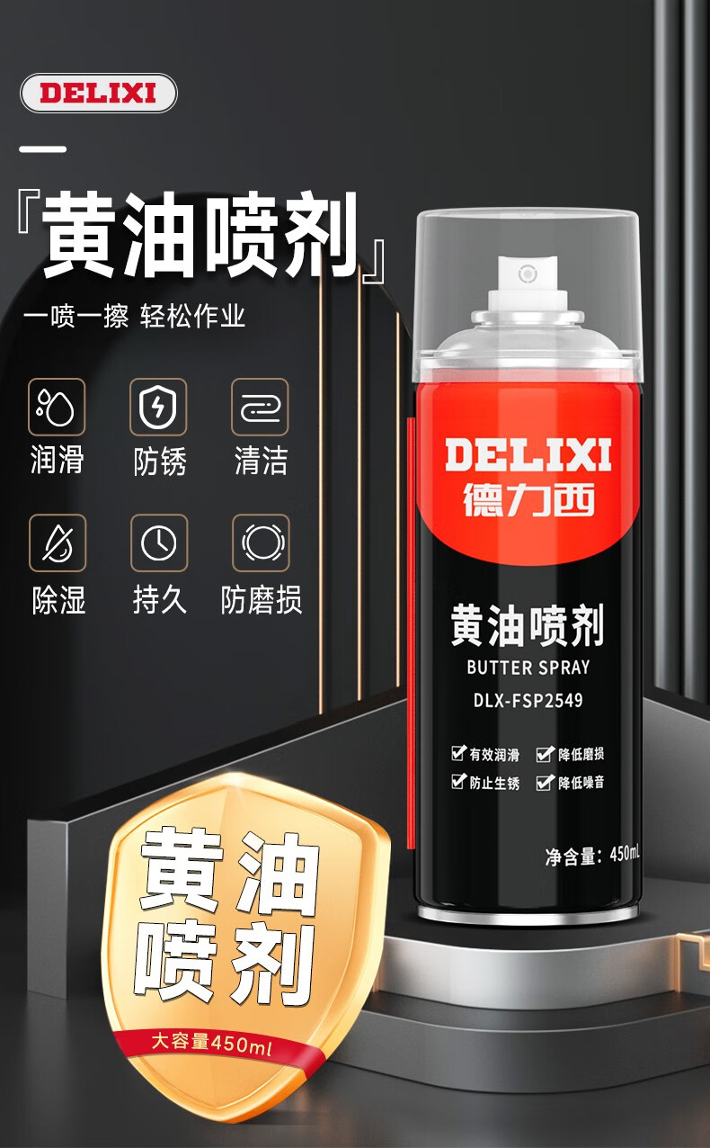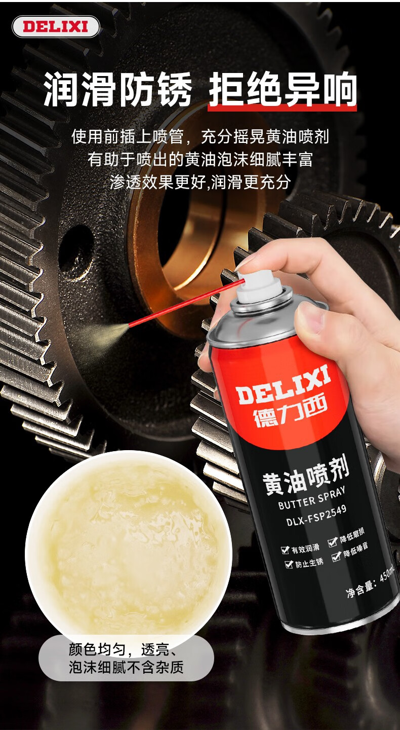 德力西黄油润滑门锁轴承齿轮异响车门轨道防锈润滑耐高温黄油喷剂 多功能除锈防锈润滑剂 450ml/瓶 单位:瓶