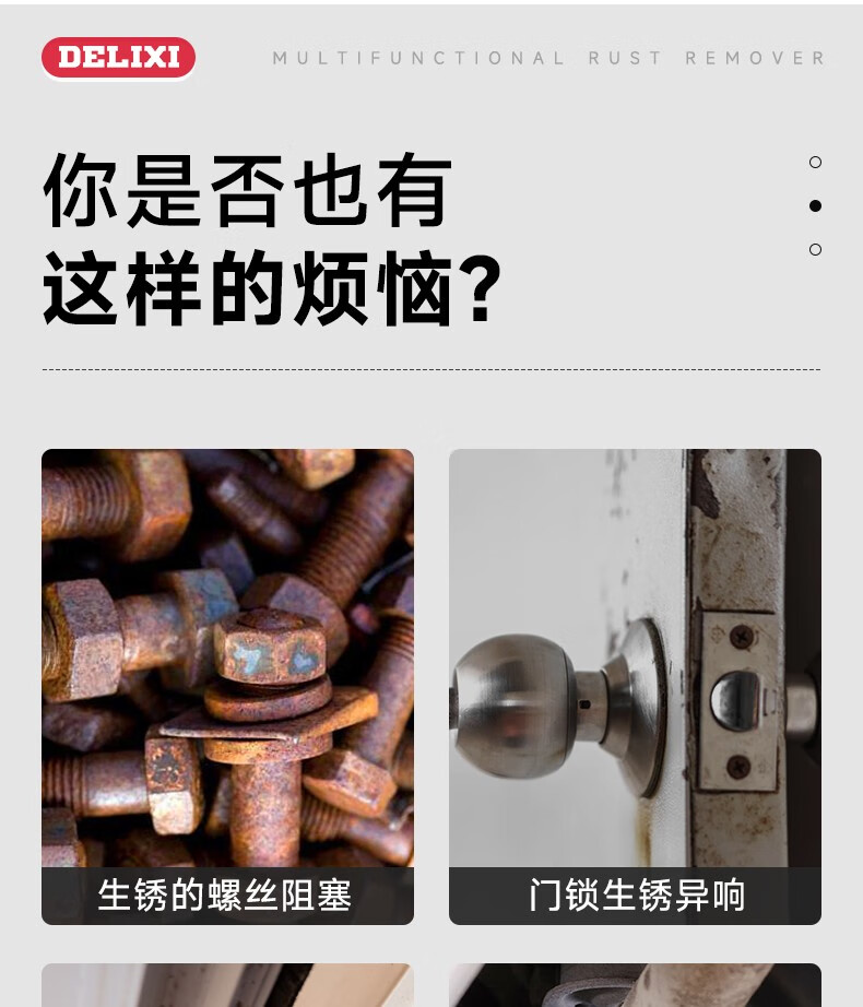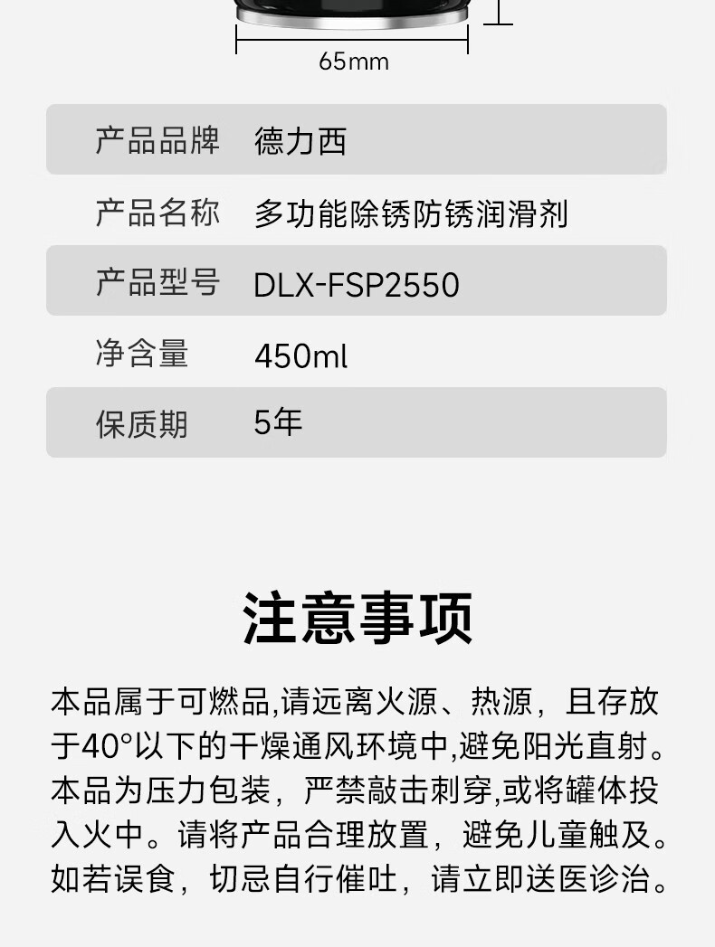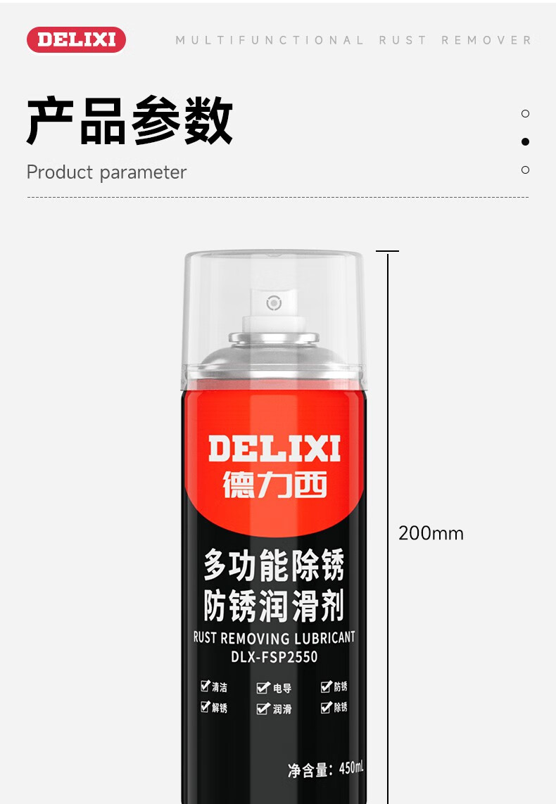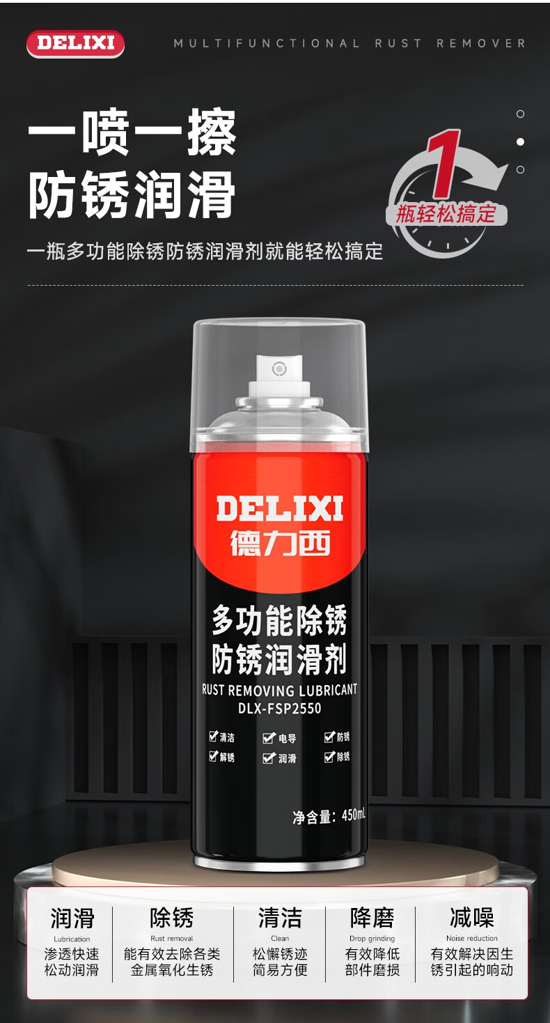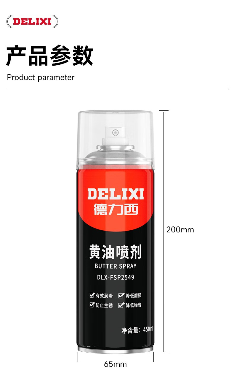 德力西黄油润滑门锁轴承齿轮异响车门轨道防锈润滑耐高温黄油喷剂 多功能除锈防锈润滑剂 450ml/瓶 单位:瓶