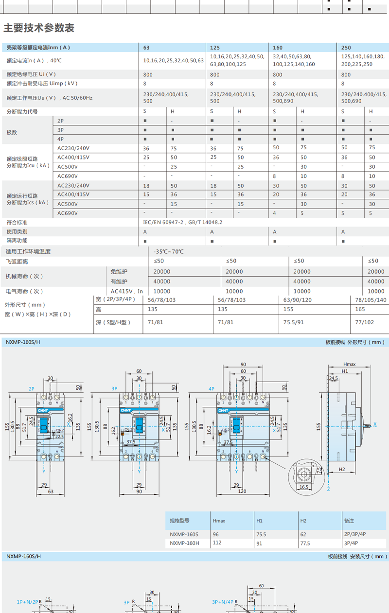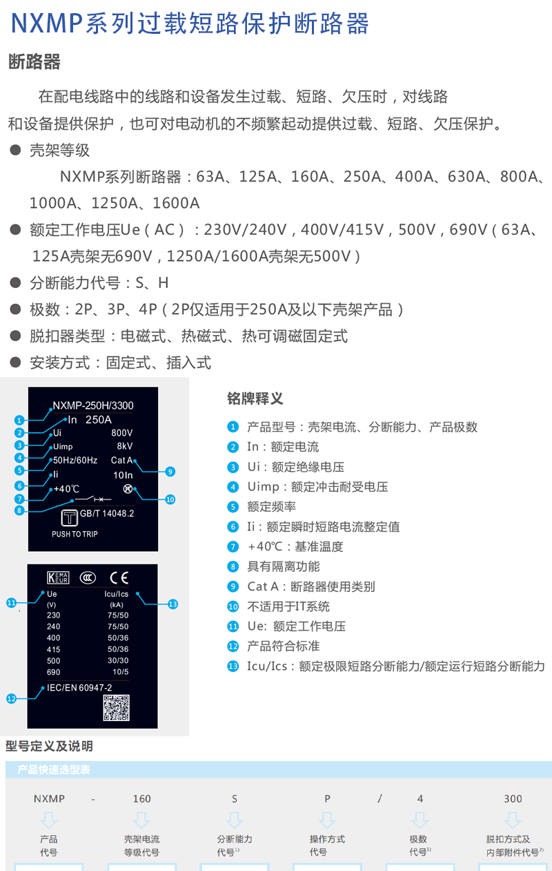 正泰 电器过载短路保护器 NXMP-160S/4300B 160A 单位:个