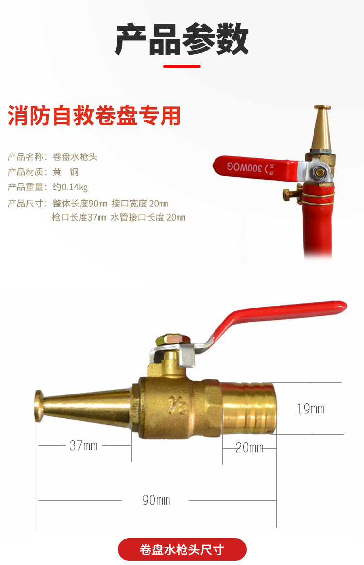 谋福(CNMF)9937 消防软卷盘水枪头 自救软管水枪头 消防水带接头 高压水枪铜枪头 单位:个