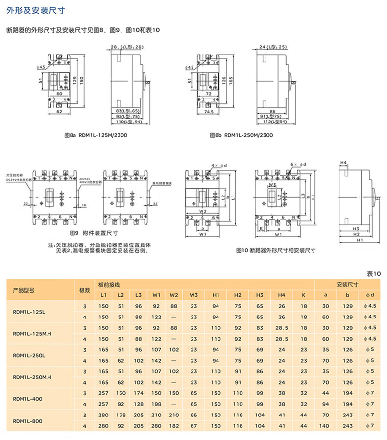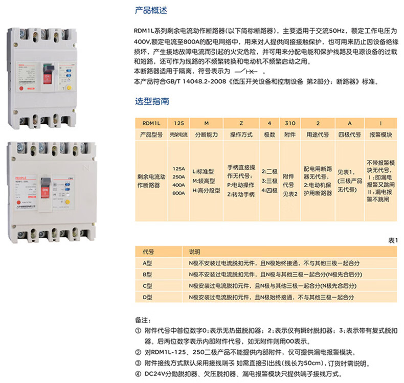 人民电器RDM1L塑壳漏电断路器4300B 4P 过载 短路 漏电保护 63A-630A RDM1L-250L/4300B 250A 单位:个