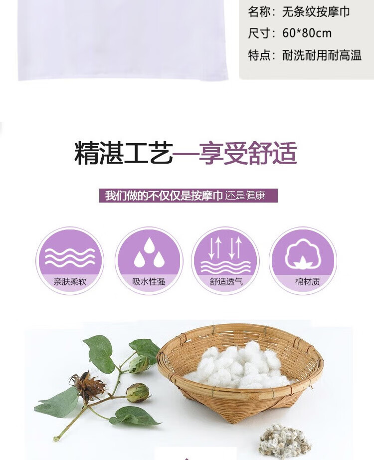 晟泰邦 纯白全棉按摩布推拿巾理疗纯棉按摩巾会所美容院手布床单盲人踩背 纯白无条纹按摩布 60厘米*80厘米 单位:条