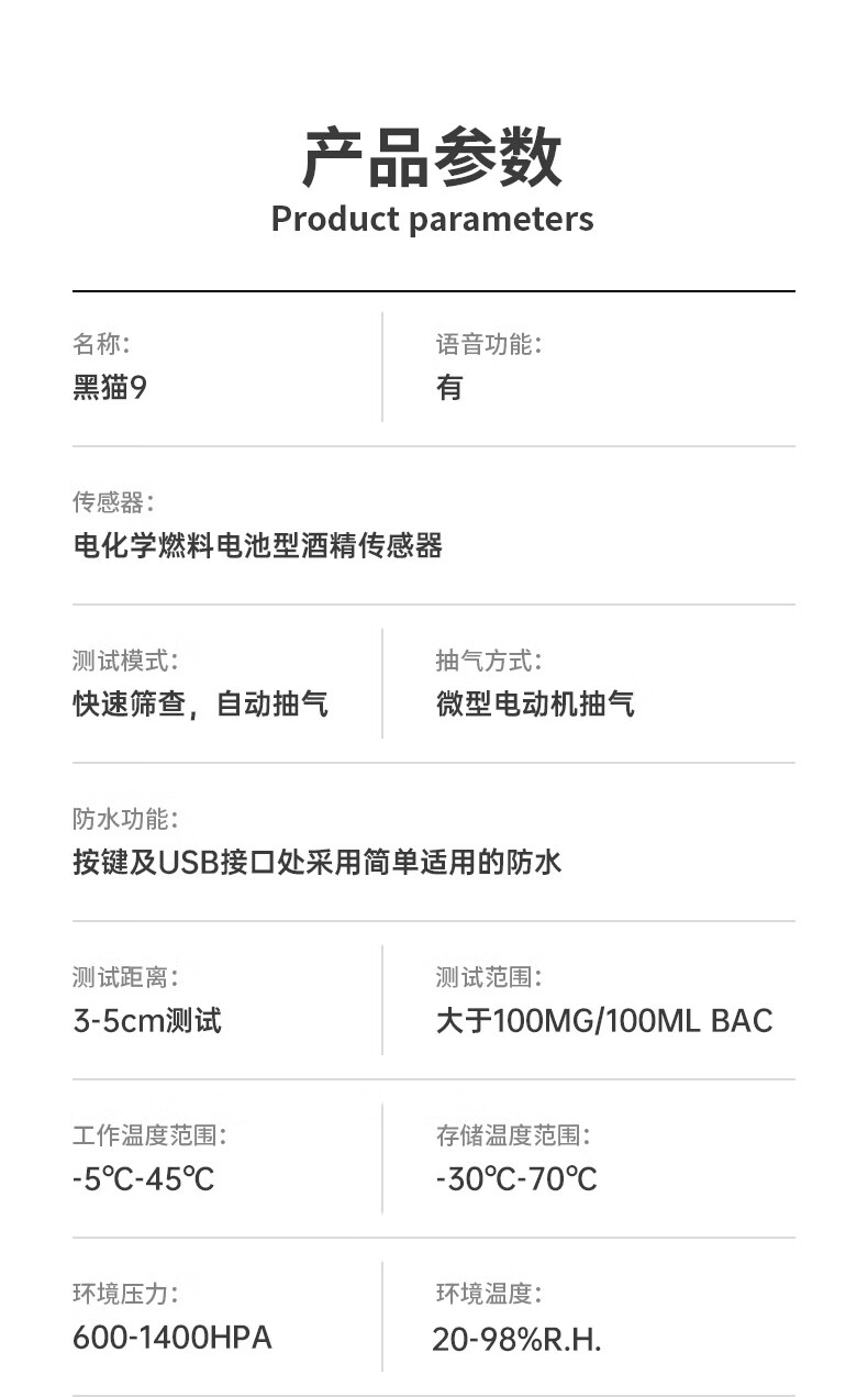 兆为 Zhaowei 黑猫9号 酒精测试仪 358*45mm 黑色 计价单位:个