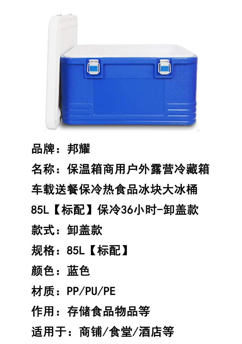 邦耀 保温箱商用户外露营冷藏箱 85L[标配] 保冷36小时-卸盖款 单位:个