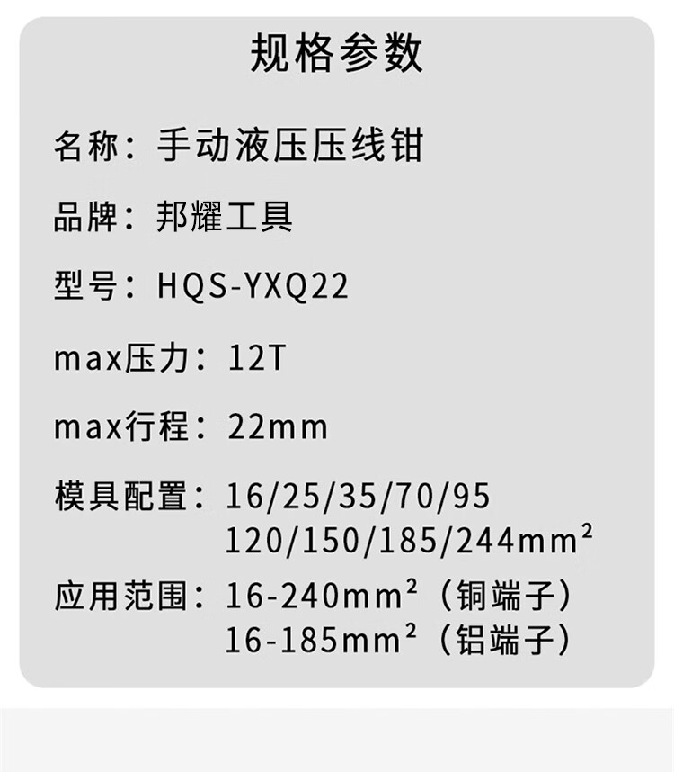 邦耀工具 HQS-YXQ22 手动液压压线钳 省力手动液压钳 单位:套