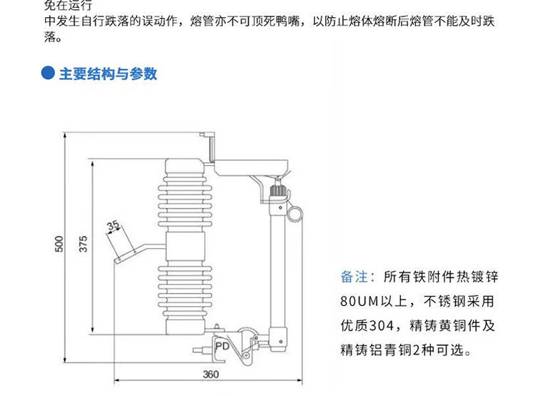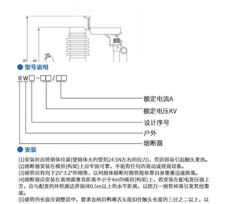 邦耀电气 10KV高压限流跌落式熔断器RW12-15/200/100A户外柱上保险开关 单位:套