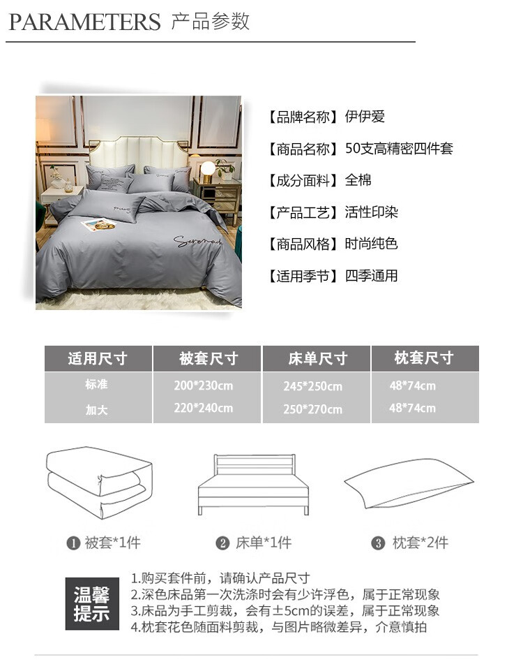伊伊爱 T01900005 纯棉精密刺绣纯色系列 四件套 200*230cm (单位:套)