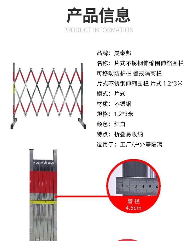 晟泰邦片式不锈钢伸缩围伸缩围栏 可移动防护栏 警戒隔离栏 片式不锈钢伸缩围栏 片式 1.2*3米