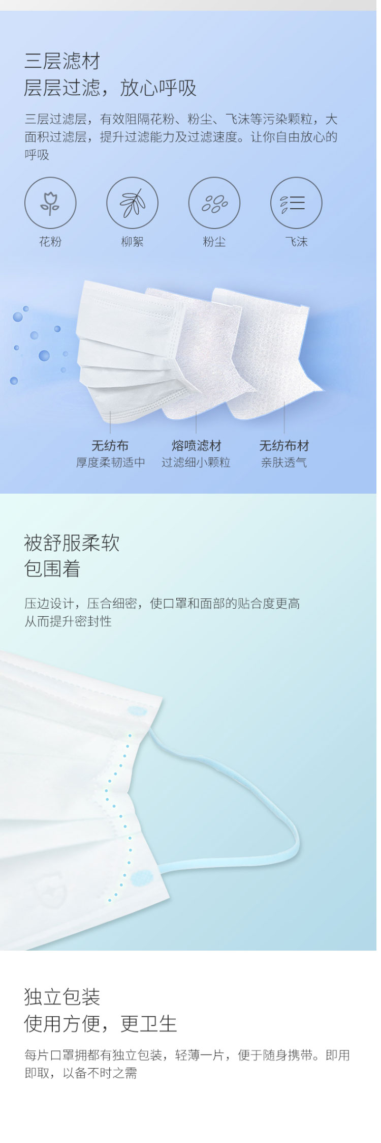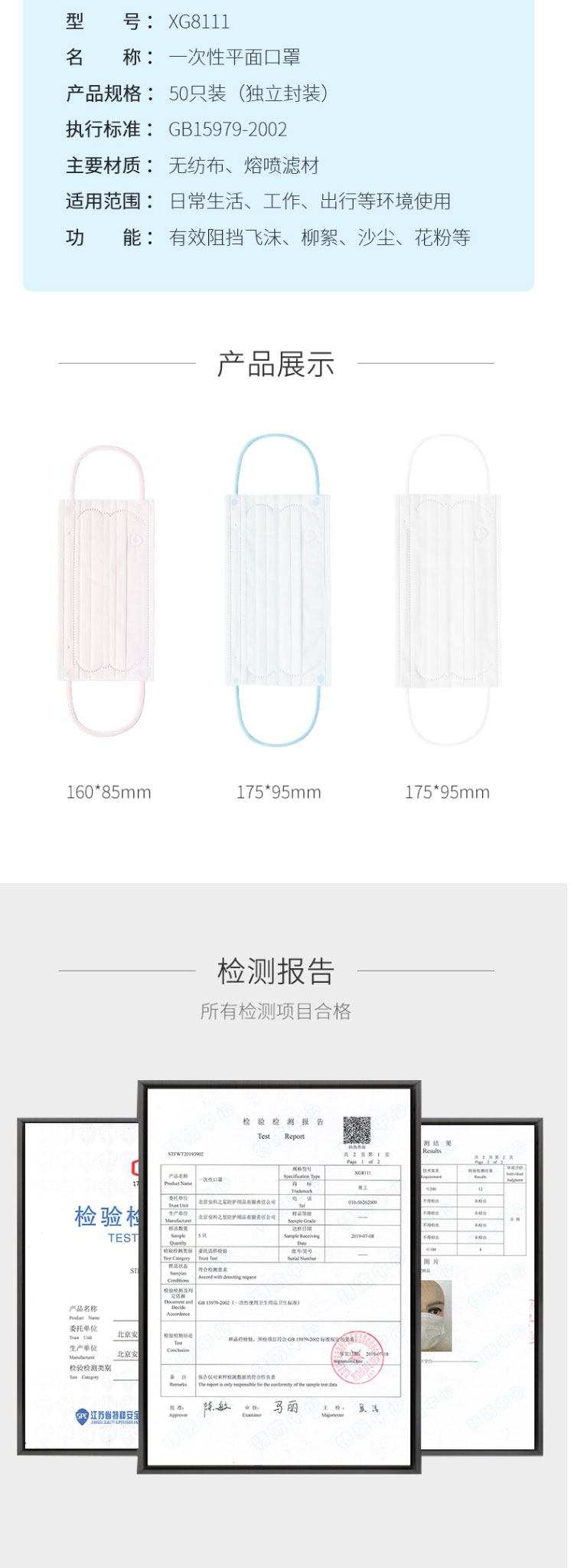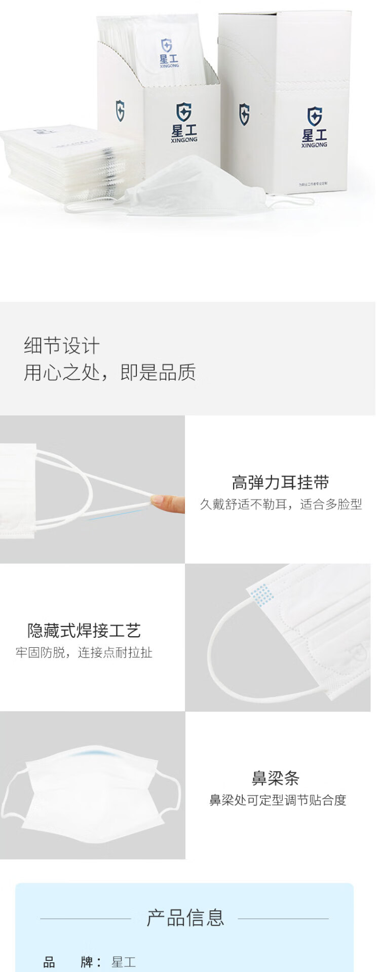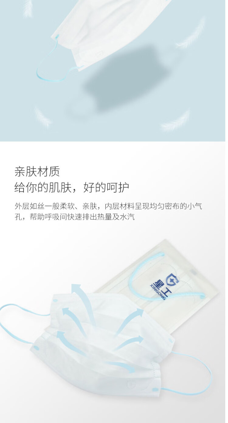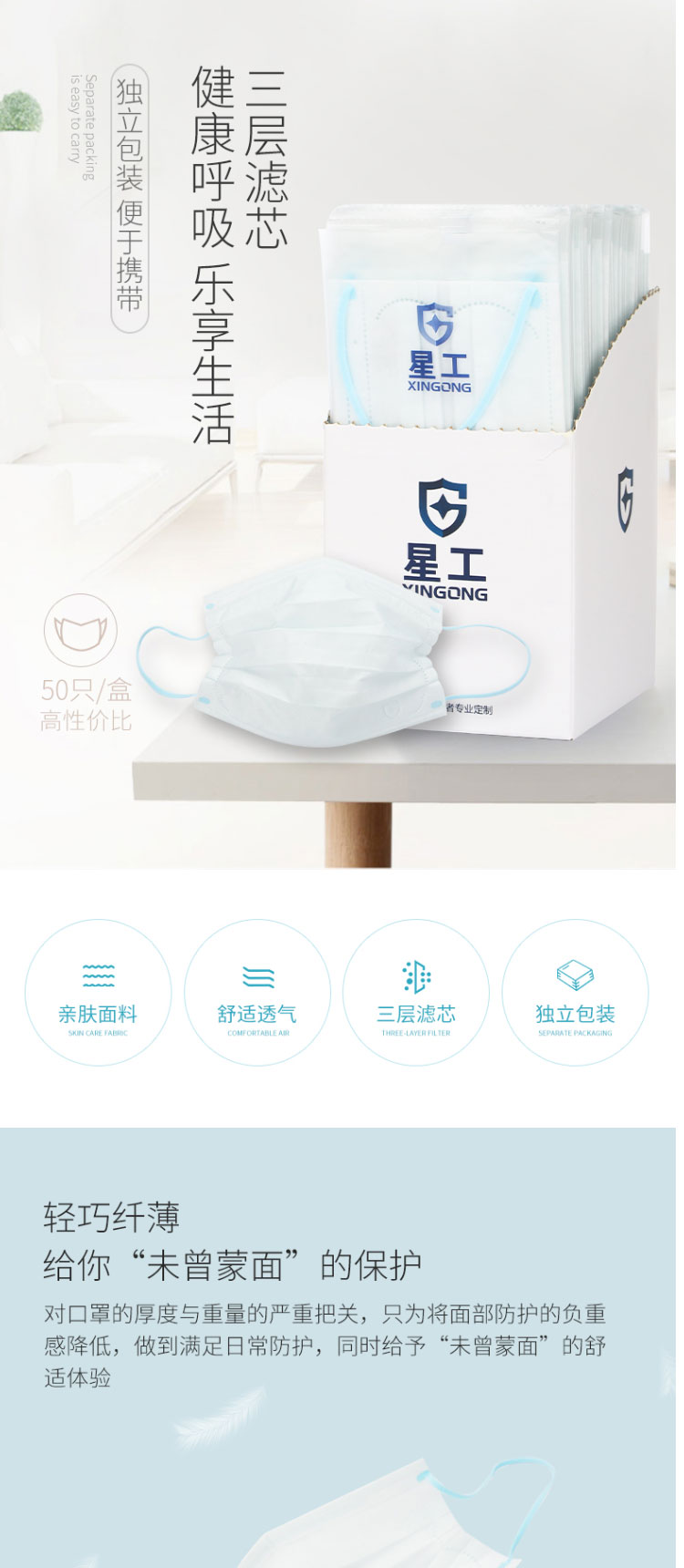 星工(XINGGONG)一次性口罩 熔喷布防粉尘花粉成人三层四折独立包装 白色50只/包 5包起订