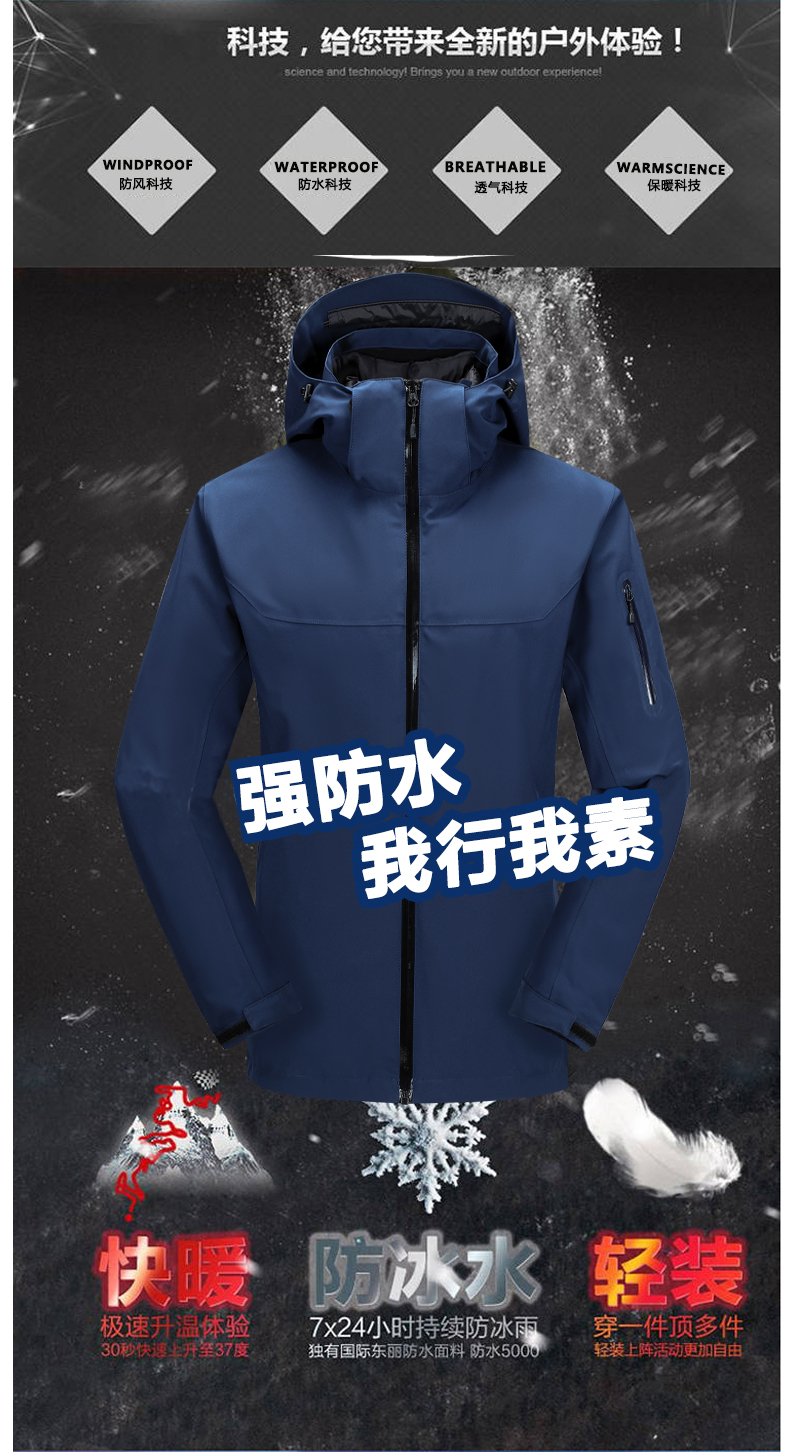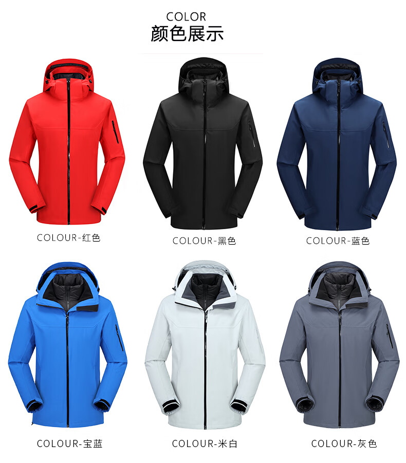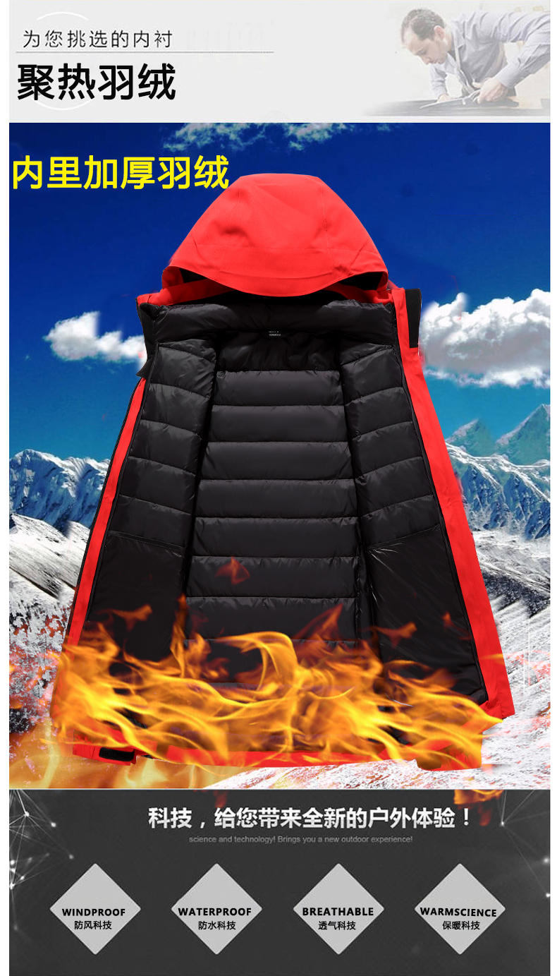 星工(XINGGONG)鸭绒防寒服 三合一羽绒服冲锋衣户外工作服外套XY-0A86 灰色 M