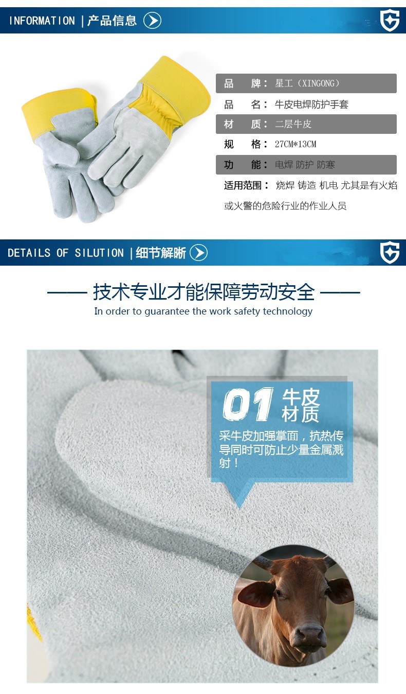 星工(XINGGONG)半皮手套 耐磨牛皮焊工手套电焊劳保手套耐磨 XGS-P1 单位:双