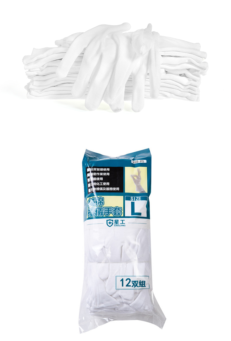 星工(XINGGONG)礼仪白手套 棉布纱线 作业接待工作手套 文玩盘珠 12付/包 2包起订 XGS-P5