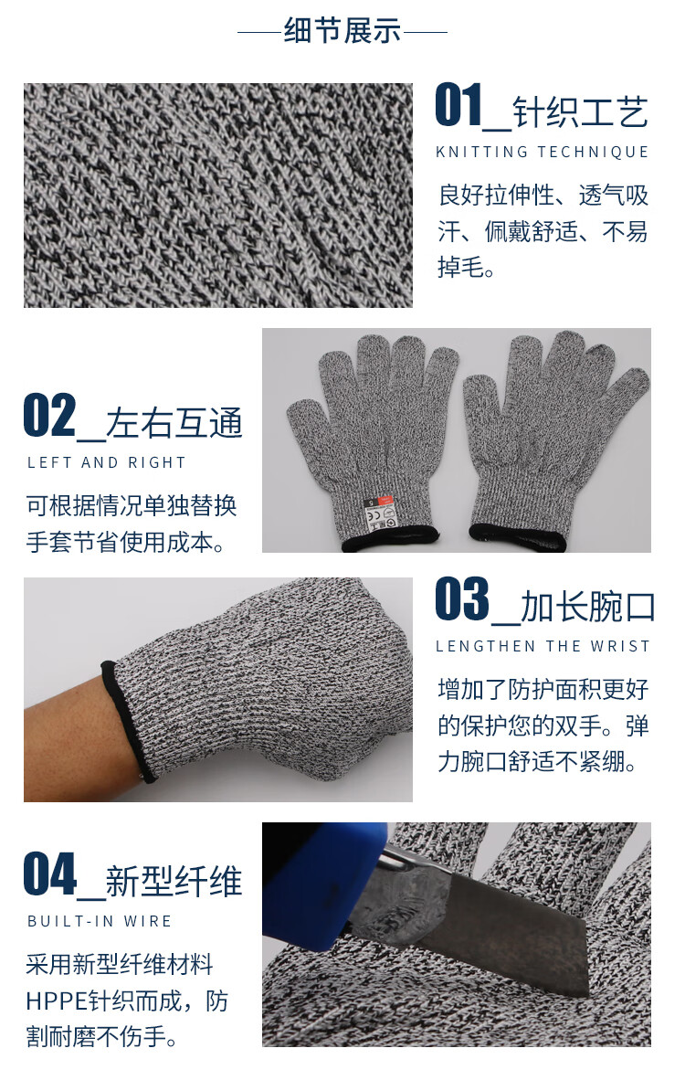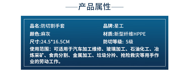 星工(XINGGONG)防割手套 防刀刃切割劳保手套厨房园艺劳动工作防护手套 1付 5付起订