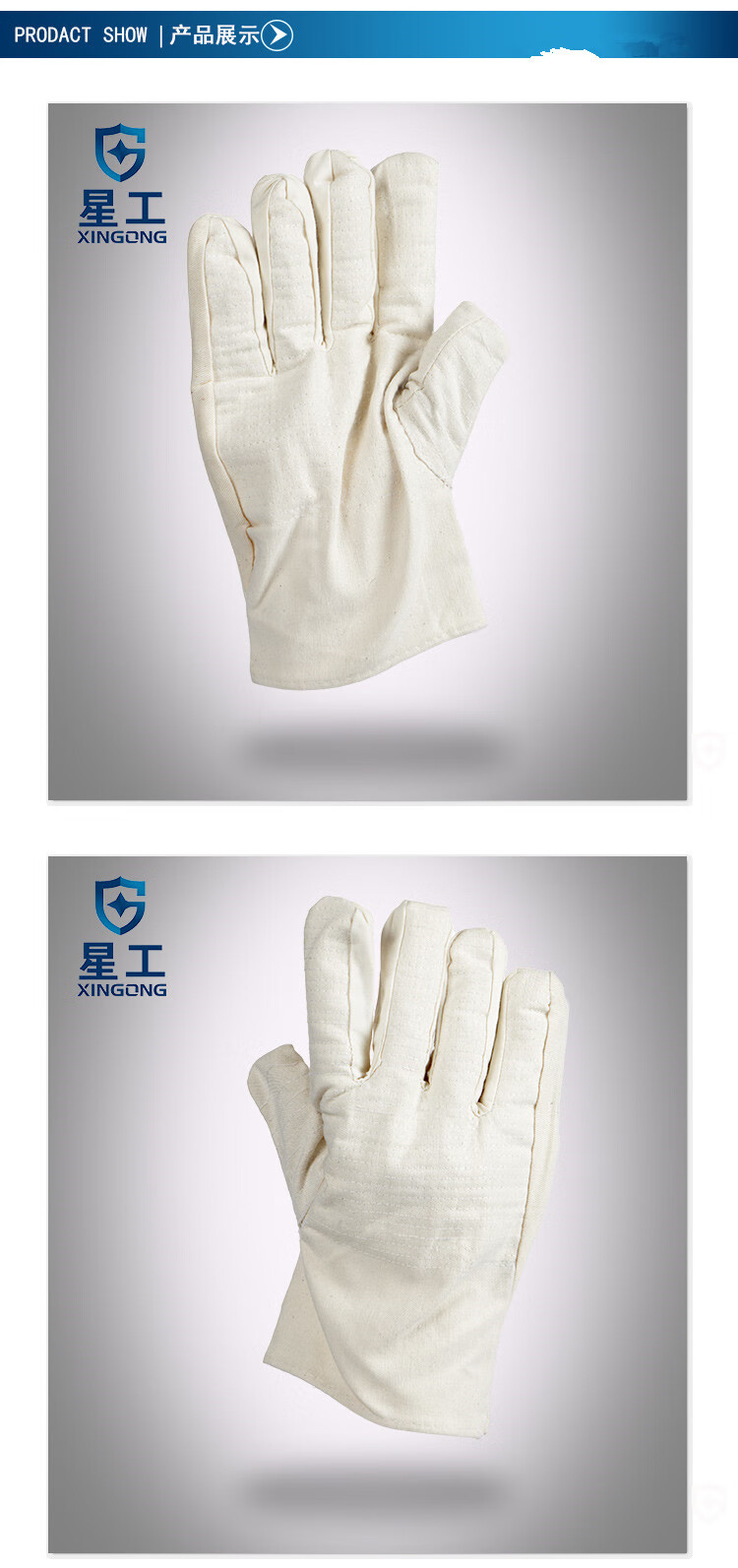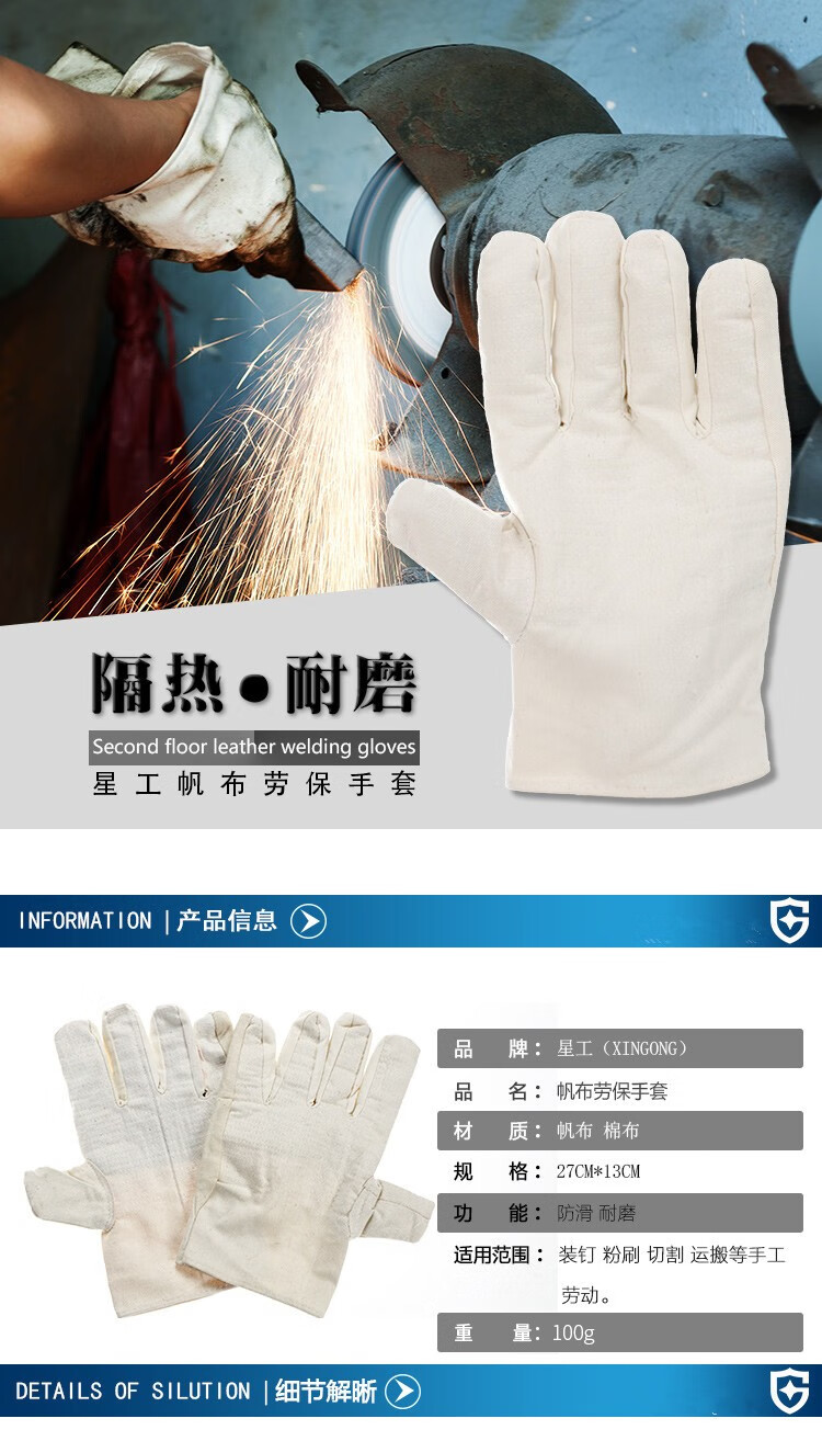 星工(XINGGONG)帆布手套 24道压线防滑耐磨加大加厚双层防护劳保手套10付/包 2包起订