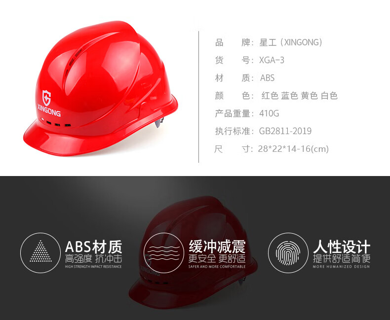 星工(XINGGONG)安全帽 建筑工程工地 电力施工 可定制 XGA-3印字链接 1个 白色 5个起订