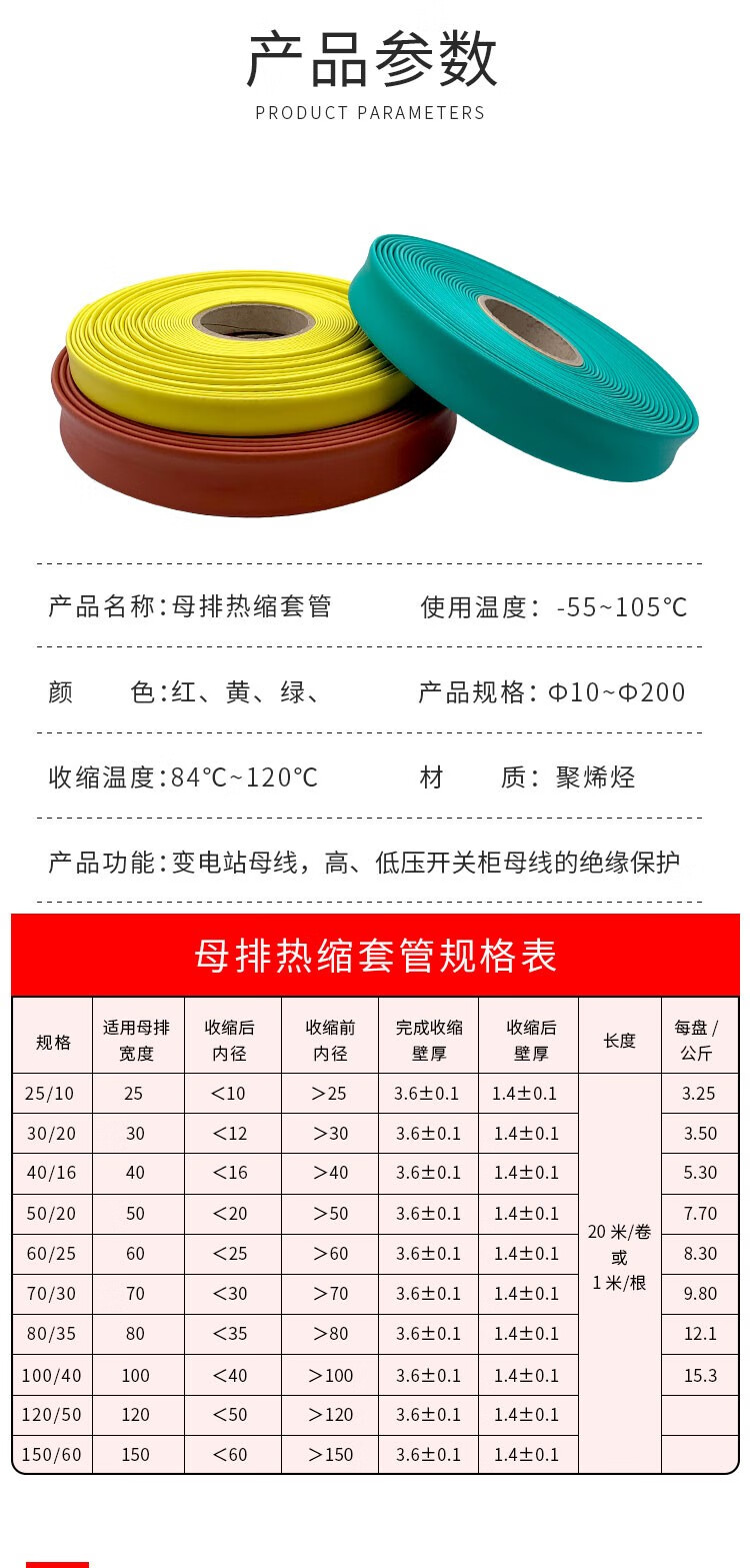 正泰(CHNT)10KV高压热缩管绝缘套管电缆热熔管收缩管热缩套 D80 25米/卷 绿色 单位:卷