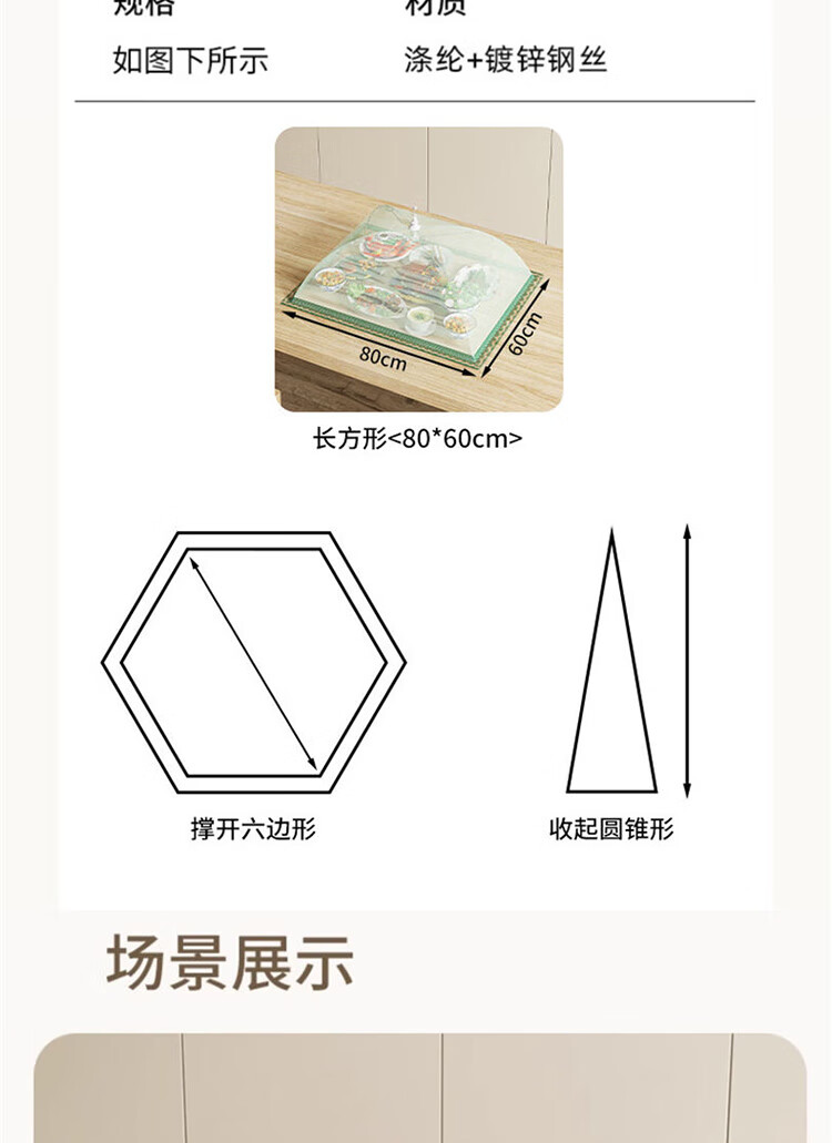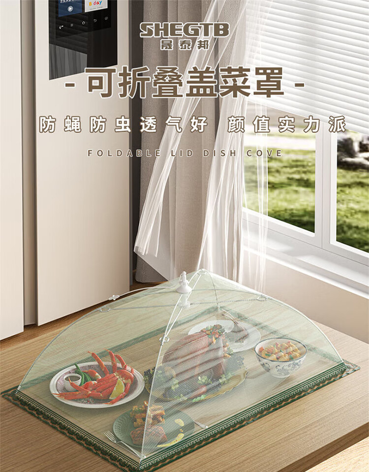 晟泰邦 菜罩花边可折叠饭菜罩 长方形绿色80*60cm 单位:个