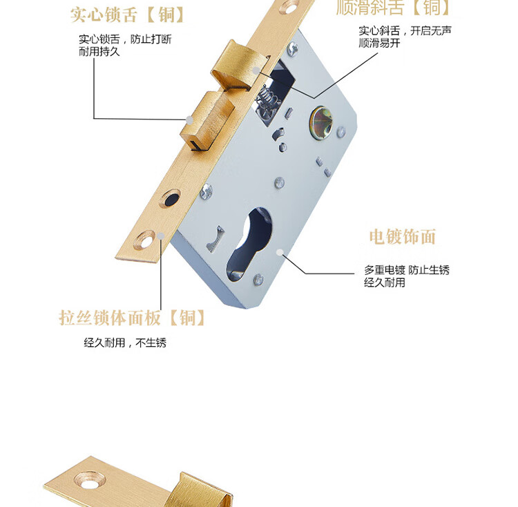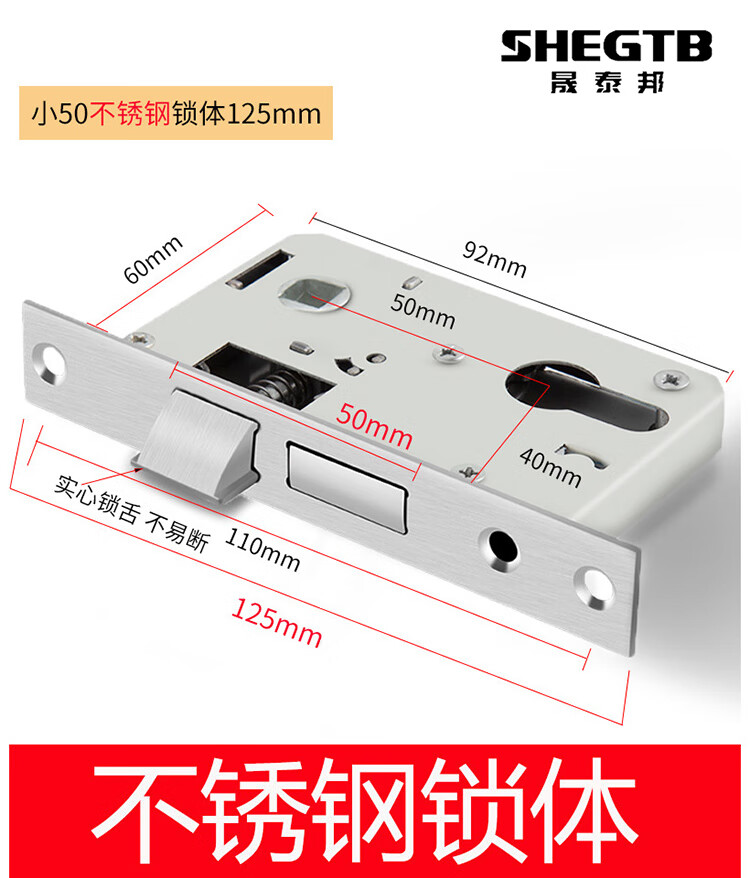 晟泰邦 内门木门配件静音锁体锁芯老式房门卧室锁舌通用型 125毫米不锈钢锁体-实心锁舌 不带钥匙 单位:个