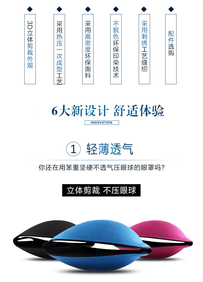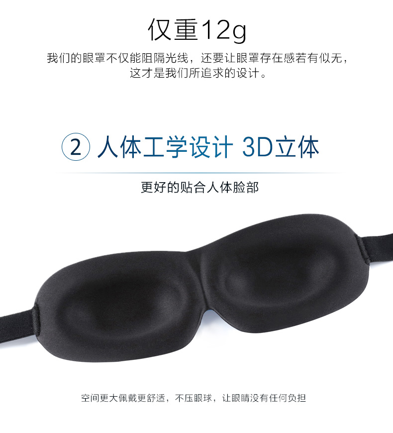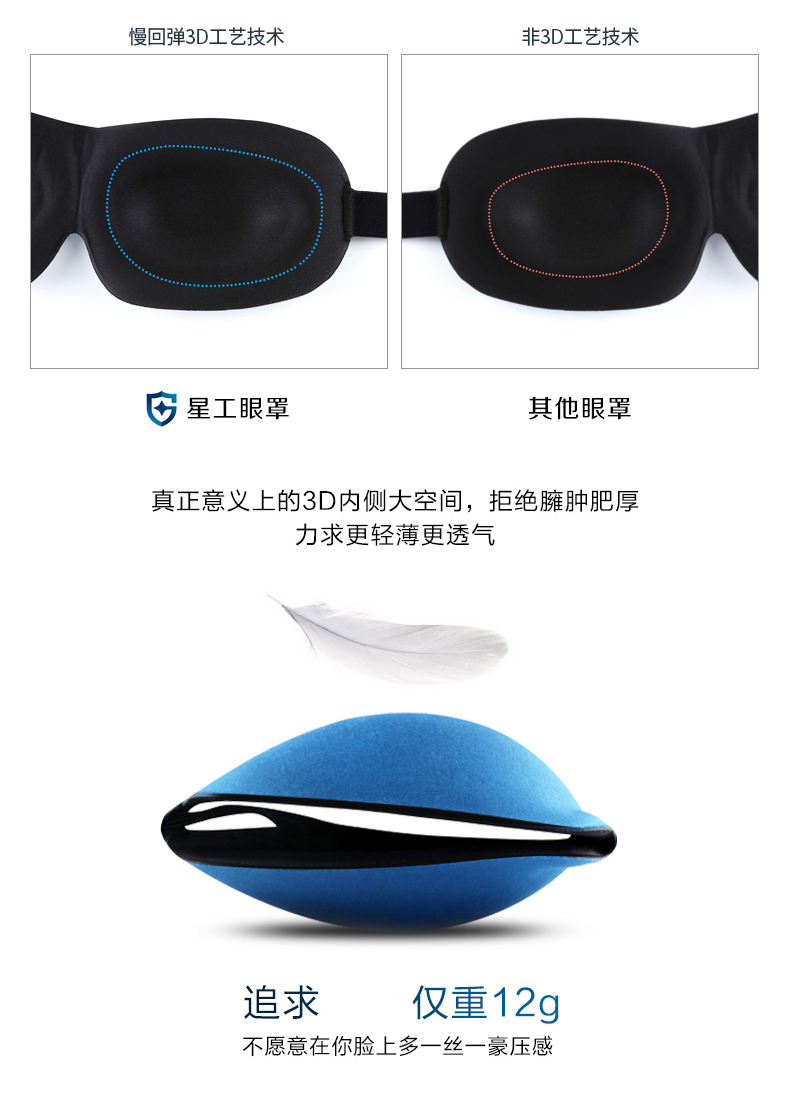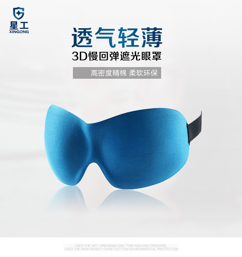 星工(XINGGONG)护眼罩 3D立体遮光避光温感太空记忆棉睡觉午休睡眠眼罩 蓝色 10个起订