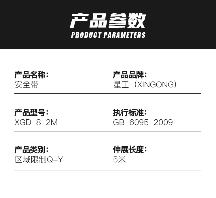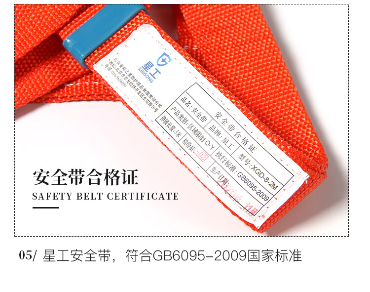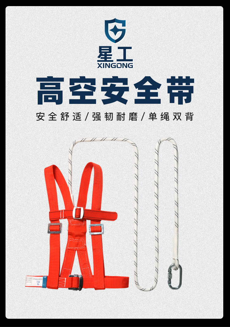 星工(XINGGONG)高空作业防坠落安全带 户外施工单钩双背式安全绳 2米绳小钩XGD-8 单位:套 3套起订