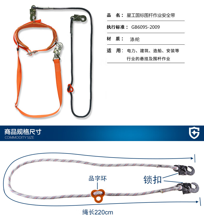 星工(XINGGONG)安全带 电工双保险电力腰式安全绳爬标绳建筑施工防坠落保险绳 XGD-6