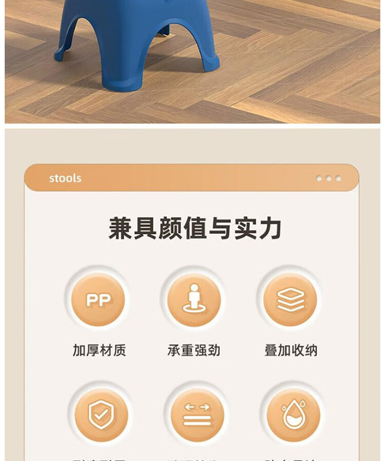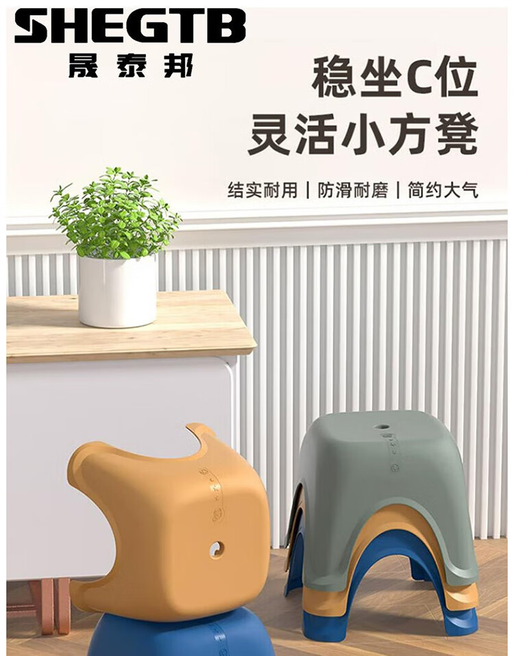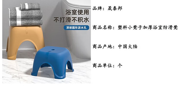 晟泰邦 塑料小凳子加厚浴室防滑凳小 32.5*32.5*26CM雾霾灰【中号】 加厚防滑 单位:张