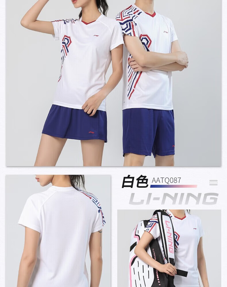 李宁羽毛球服运动套装男女士李宁跑步短袖速干健身服训练t恤乒乓网球 067女白色【长裤套装】 (S-3XL可选 下单备注)单位:套