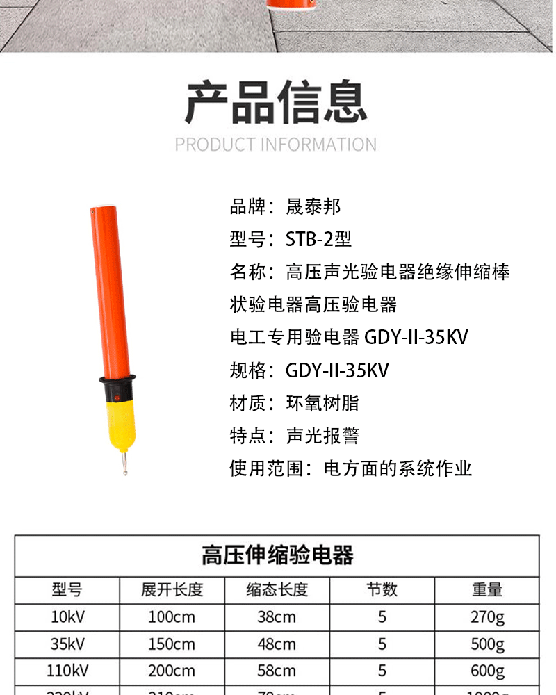 晟泰邦 STB-2型高压声光验电器绝缘伸缩棒状验电器高压验电器 电工专用验电器 GDY-II-35K