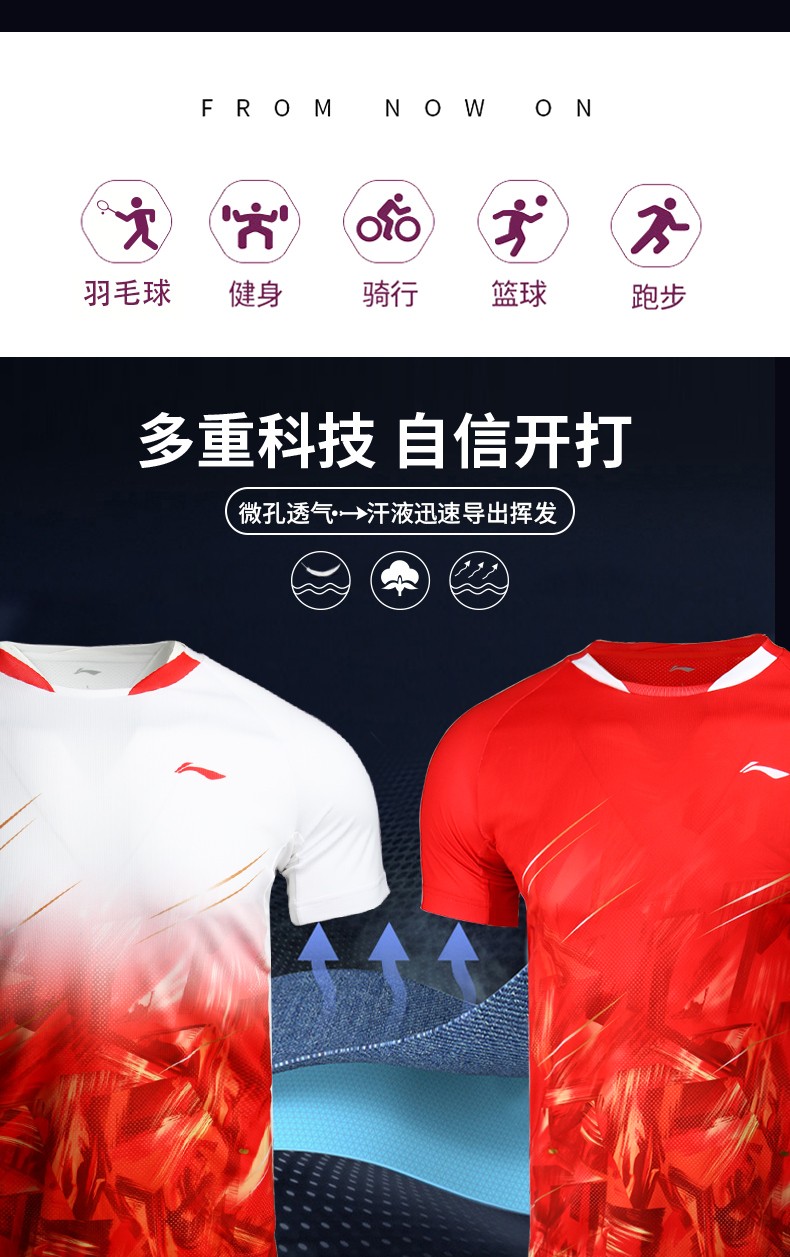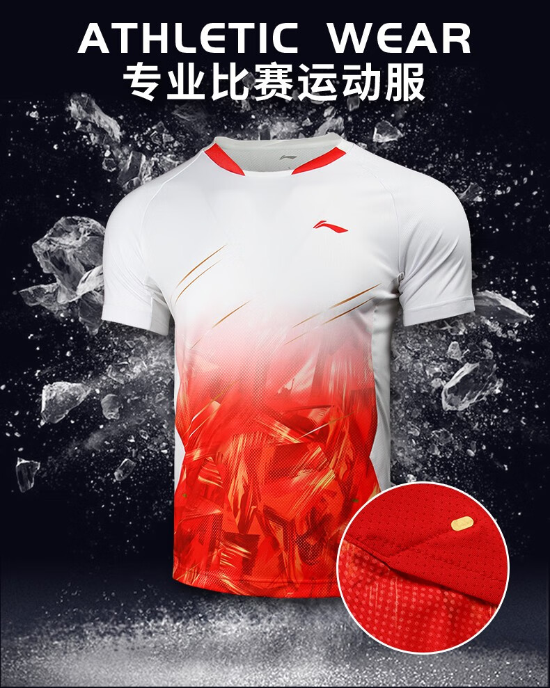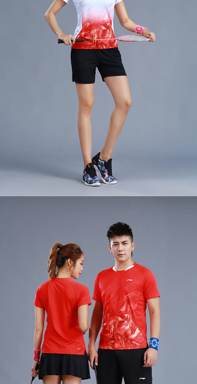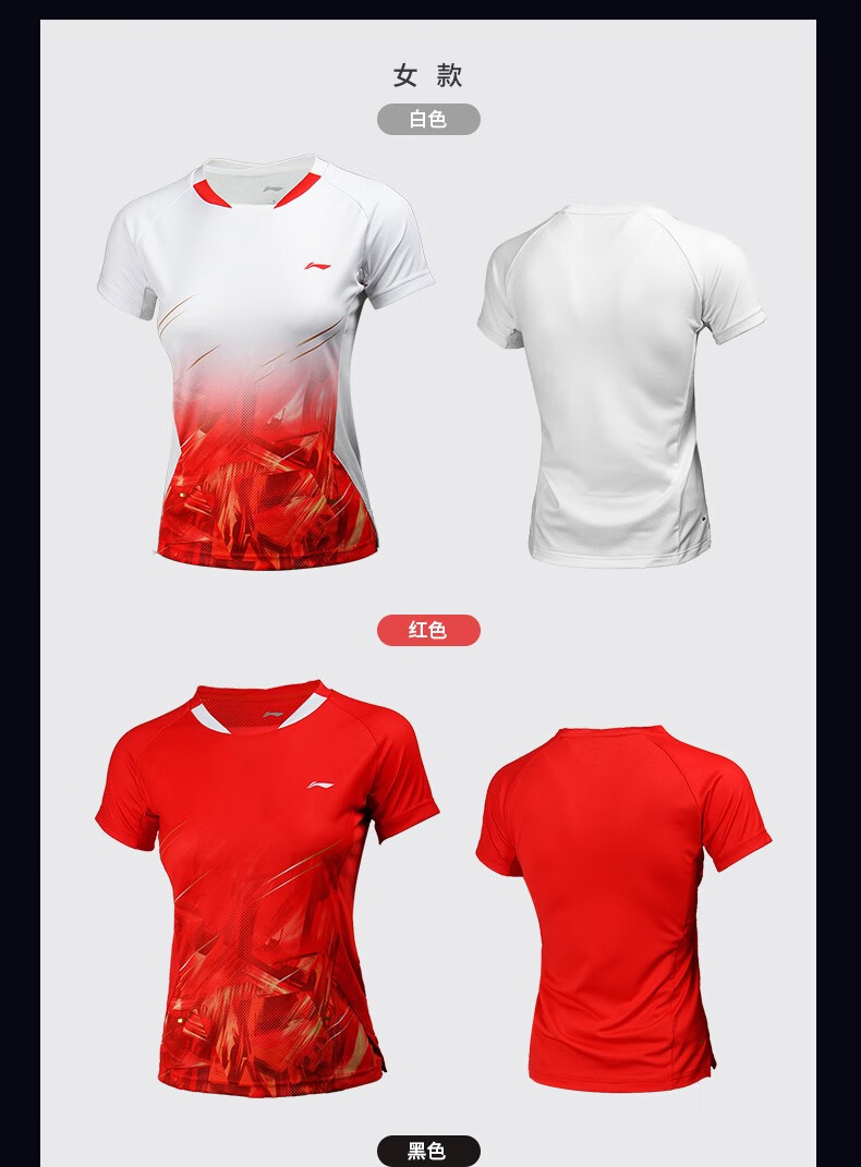 李宁 羽毛球服上衣短袖专业比赛训练运动服圆领透气速干排汗队服印字 女子/白色上衣(S-3XL可选 下单备注)单位:件