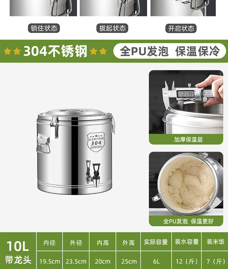 晟泰邦 304不锈钢保温桶保温保冷带单龙头 饭桶豆浆桶汤桶 (单龙头 10L) 单位:个
