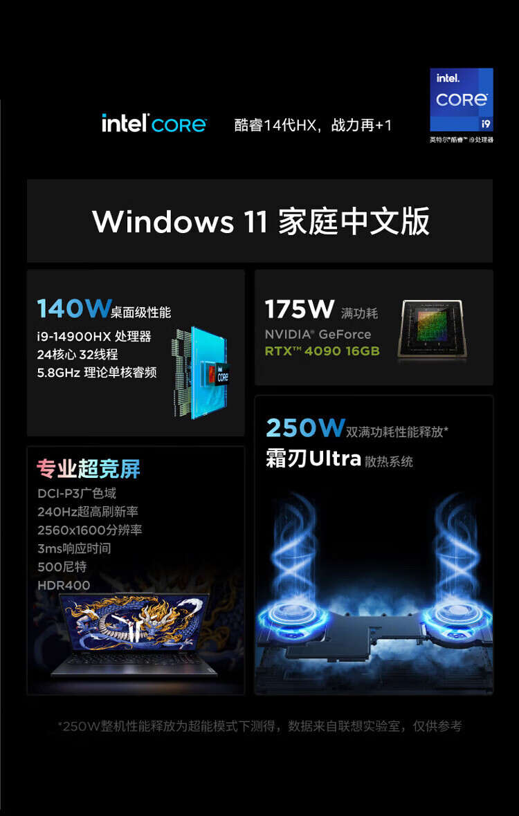 联想拯救者Y9000P至尊版 2024款RTX4090独显16G 16英寸2.5K高刷电竞游戏笔记本电脑 i9-14900HX 96G 2T升级 单位:台