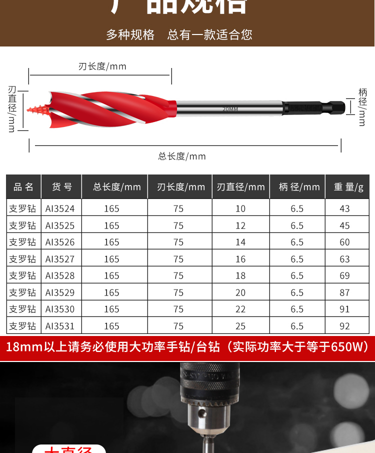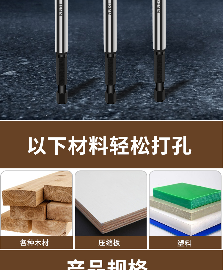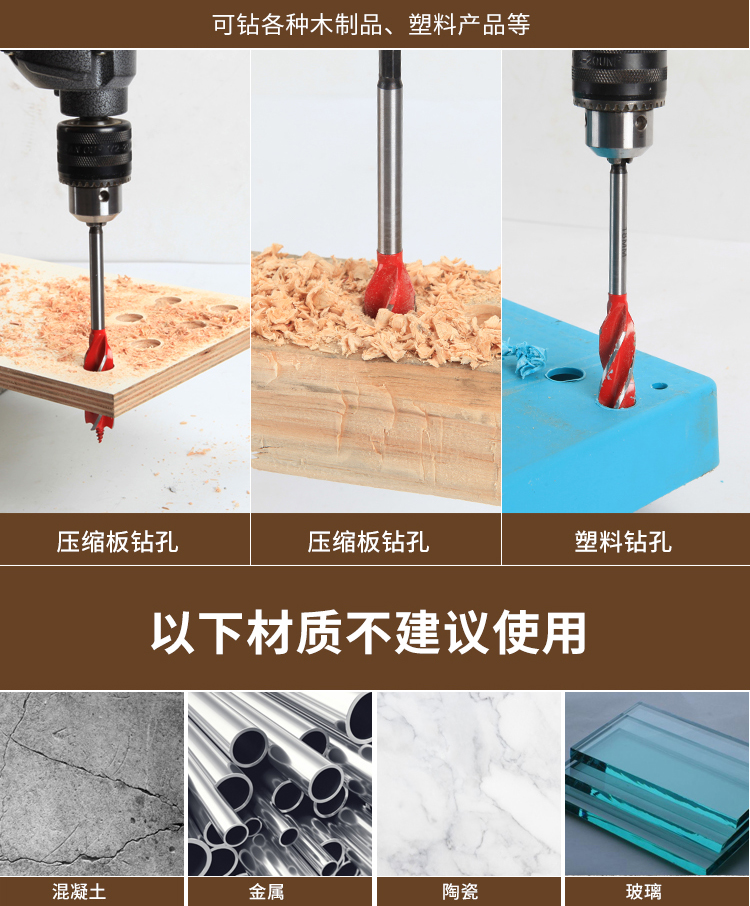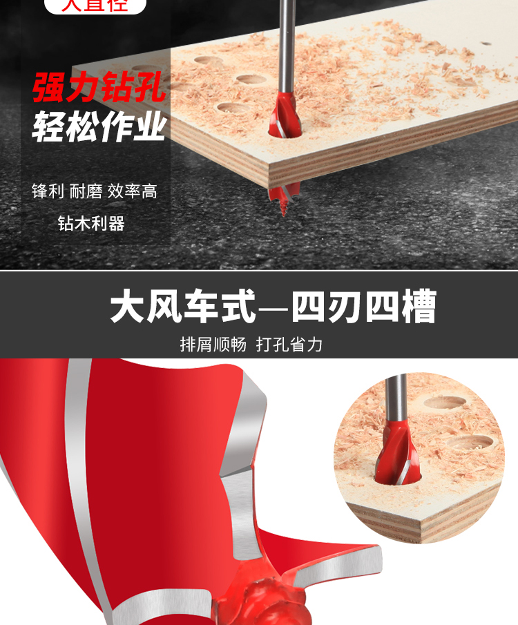 卡夫威尔 木工支罗钻木工开孔钻头扩孔器开孔器空心钻头四槽四刃六角柄支罗钻 20mm AI3529 单位:个 5个起订