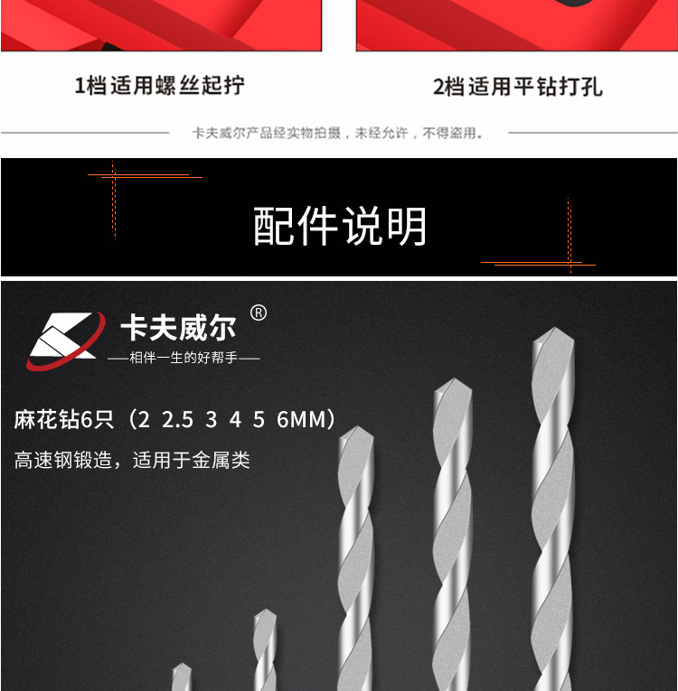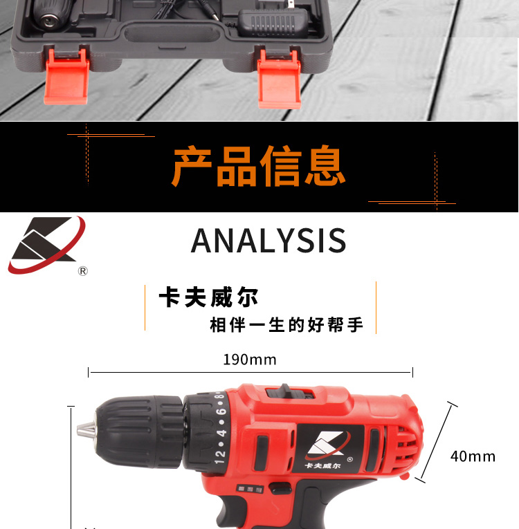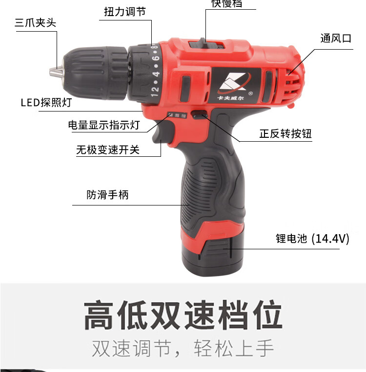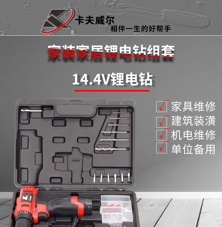 卡夫威尔 15件套14.4V多功能锂电钻套装 日常家用工具箱套装 家居备用手电钻工具组套( 一电一充)P3070A