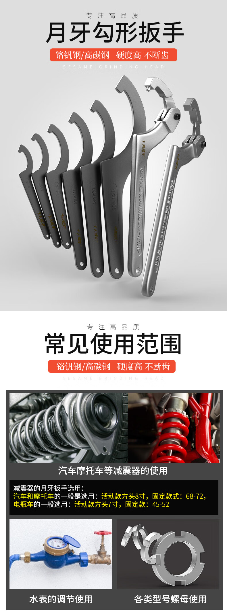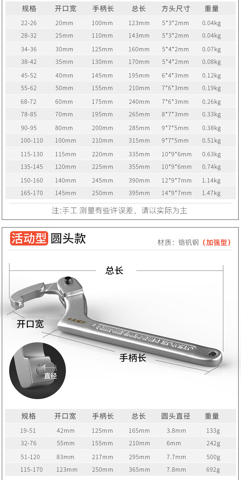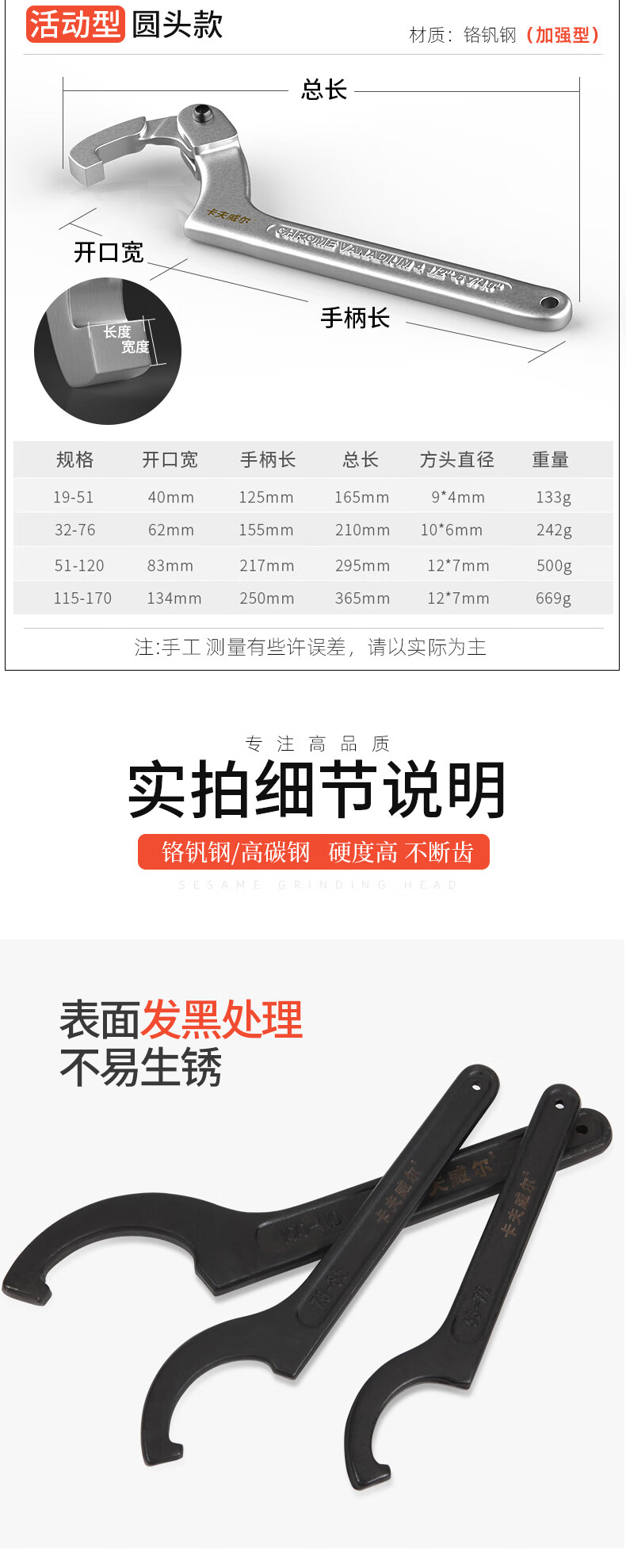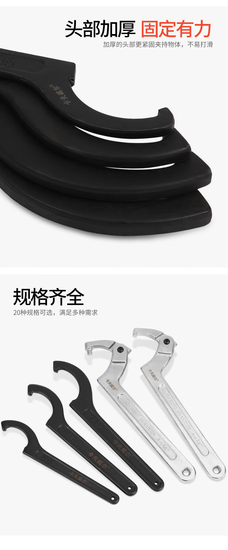 卡夫威尔 勾型扳手月牙扳手勾头半圆钩型扳手 100-110mm WR2867H 单位:把 5把起订
