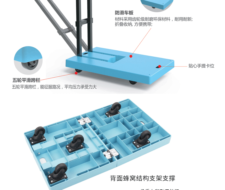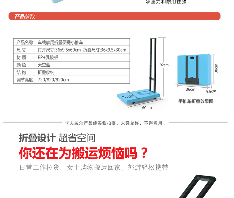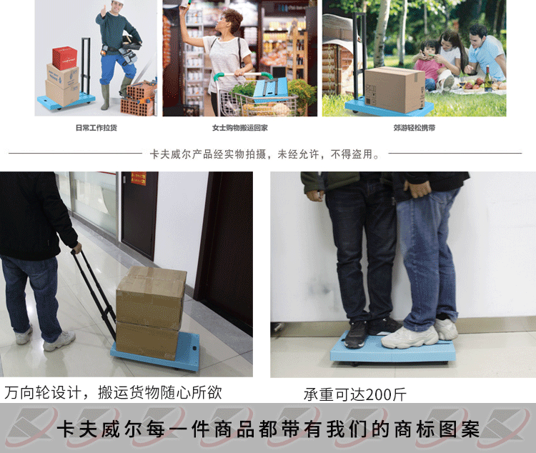卡夫威尔 车载便携手推车折叠小推车手推车货车搬运平板车手拉车拉杆行李车 PK3101