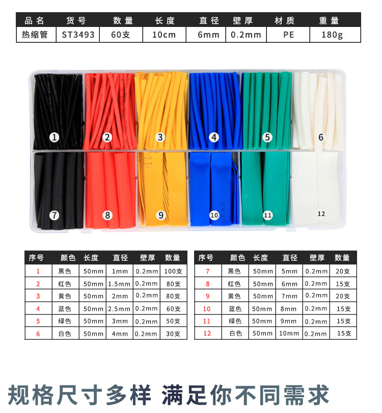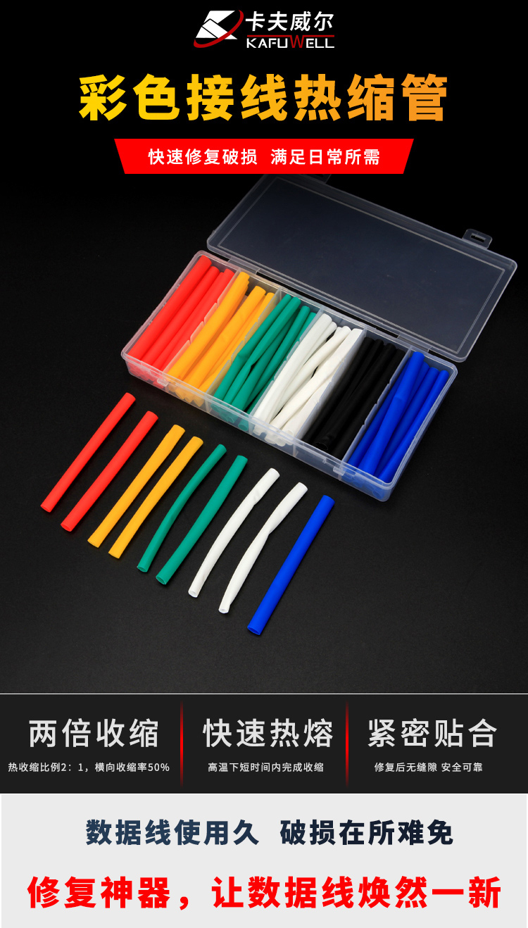 卡夫威尔 热缩管彩色绝缘套管电线修复充电数锯线耳机线保护防水套管 500PCS ST3494 单位:盒 5盒起订