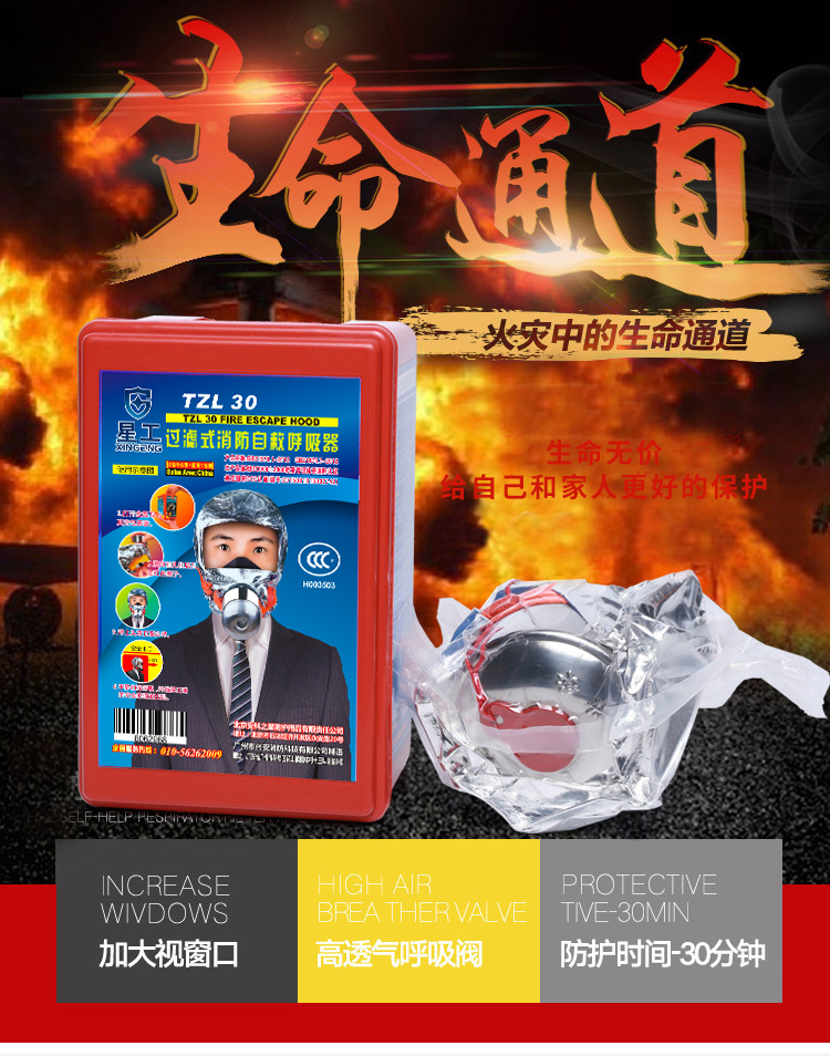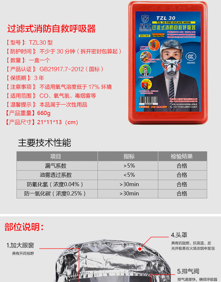 星工(XINGGONG)逃生面罩火灾防毒面具 消防火灾逃生面具面罩 过滤式自救呼吸器橡胶 2个起订
