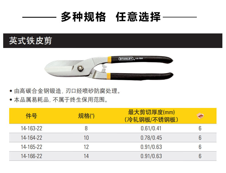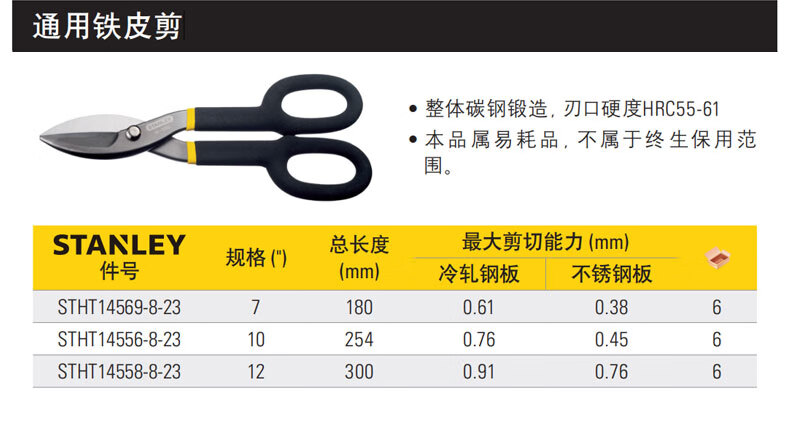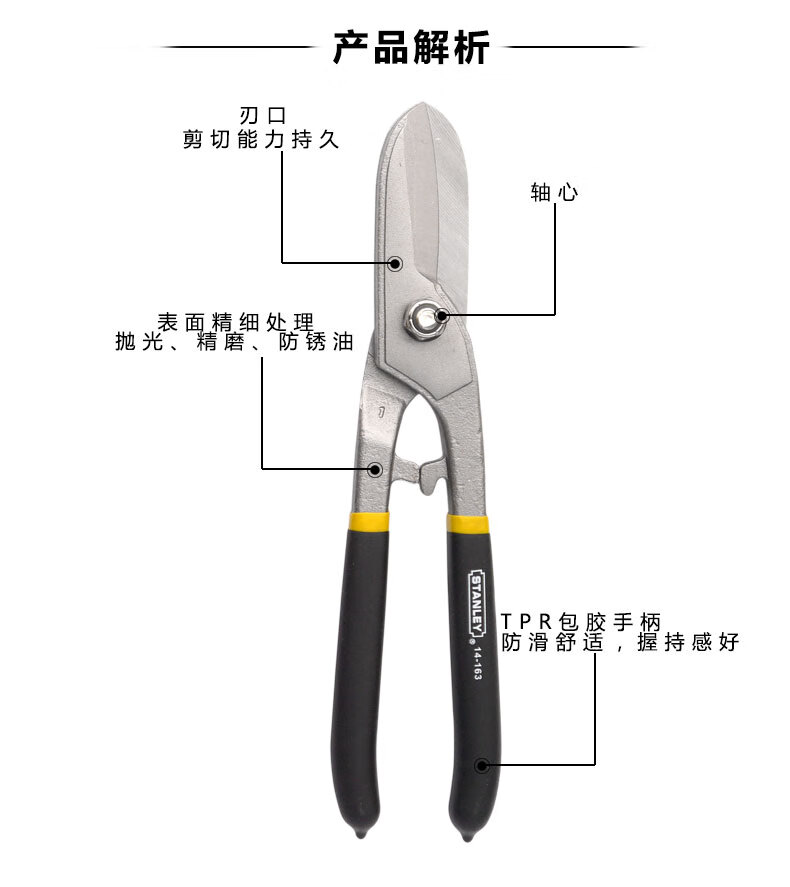 史丹利(STANLEY)英式铁皮剪电工剪电缆剪冷轧钢板不锈钢板铁丝剪 14-163-22 (8英寸)