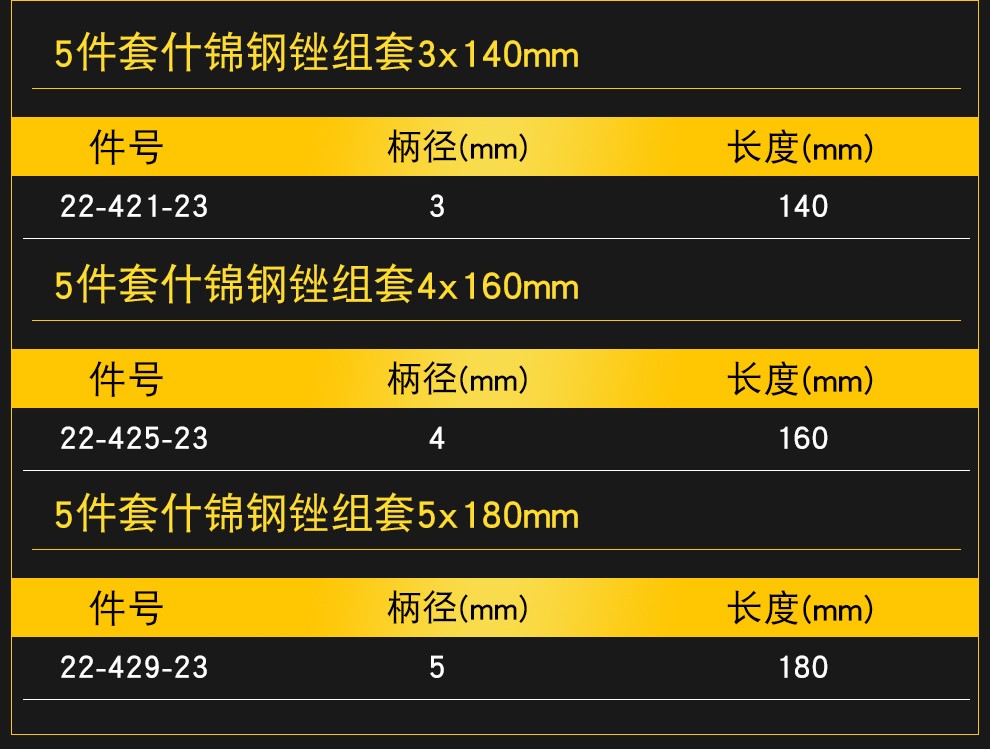 史丹利(Stanley)什锦锉套装 扁平锉半圆锉方锉细齿金属打磨整形锉刀 什锦锉刀5件套 5x180mm 22-429-23 单位:套 5套起订